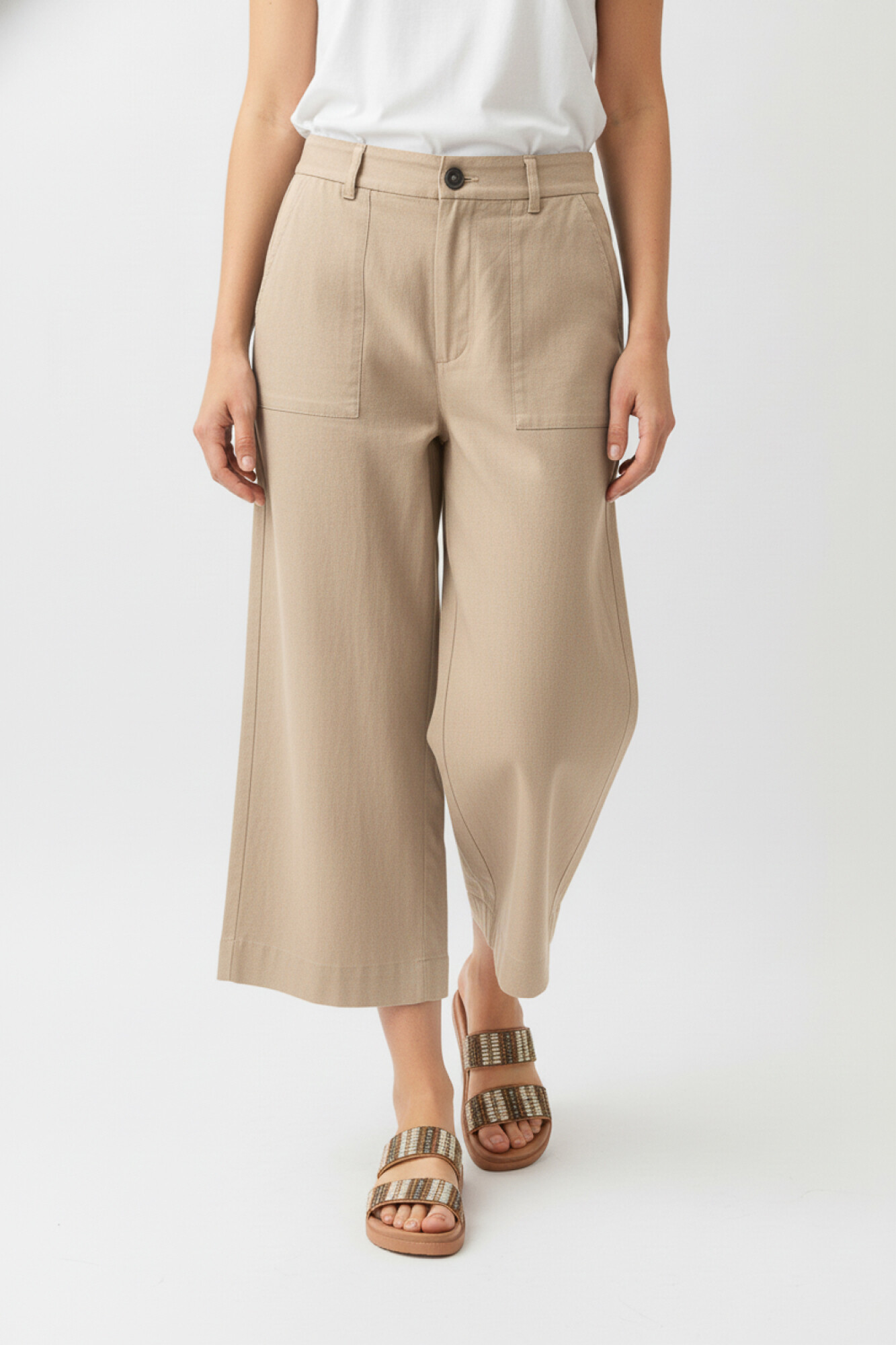 Pantalon viscosa, con bolsillo, ancho y de calce alto 01342314113 https://www.indian.com.uy/catalogo/pantalon-xanthi-arena-melange_01342314_113