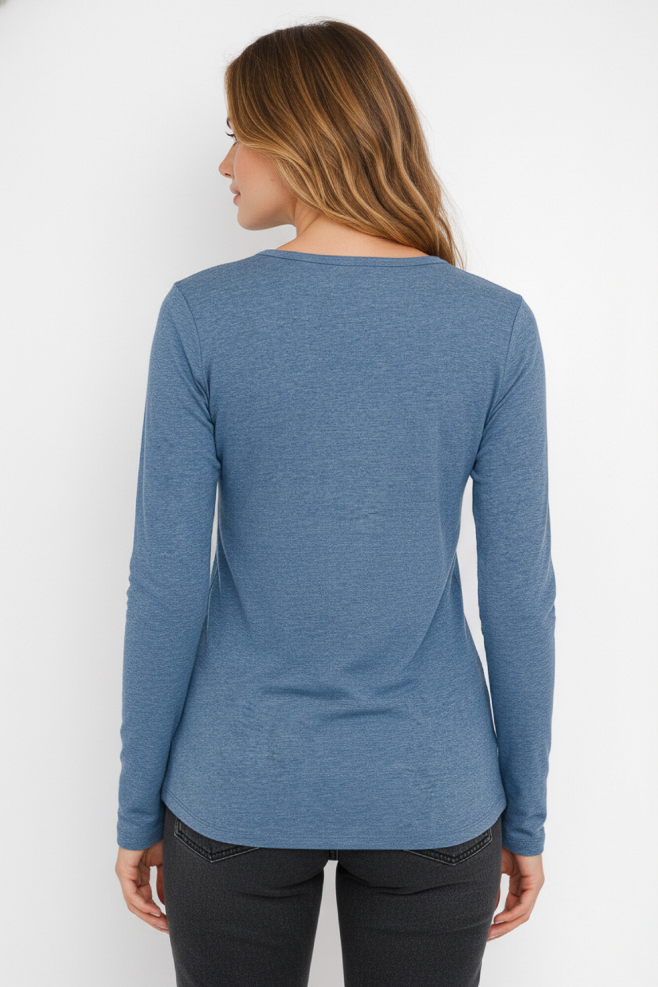 Nuevos Remera manga larga de algodon, liso, entallado, con botones y cuello redondo