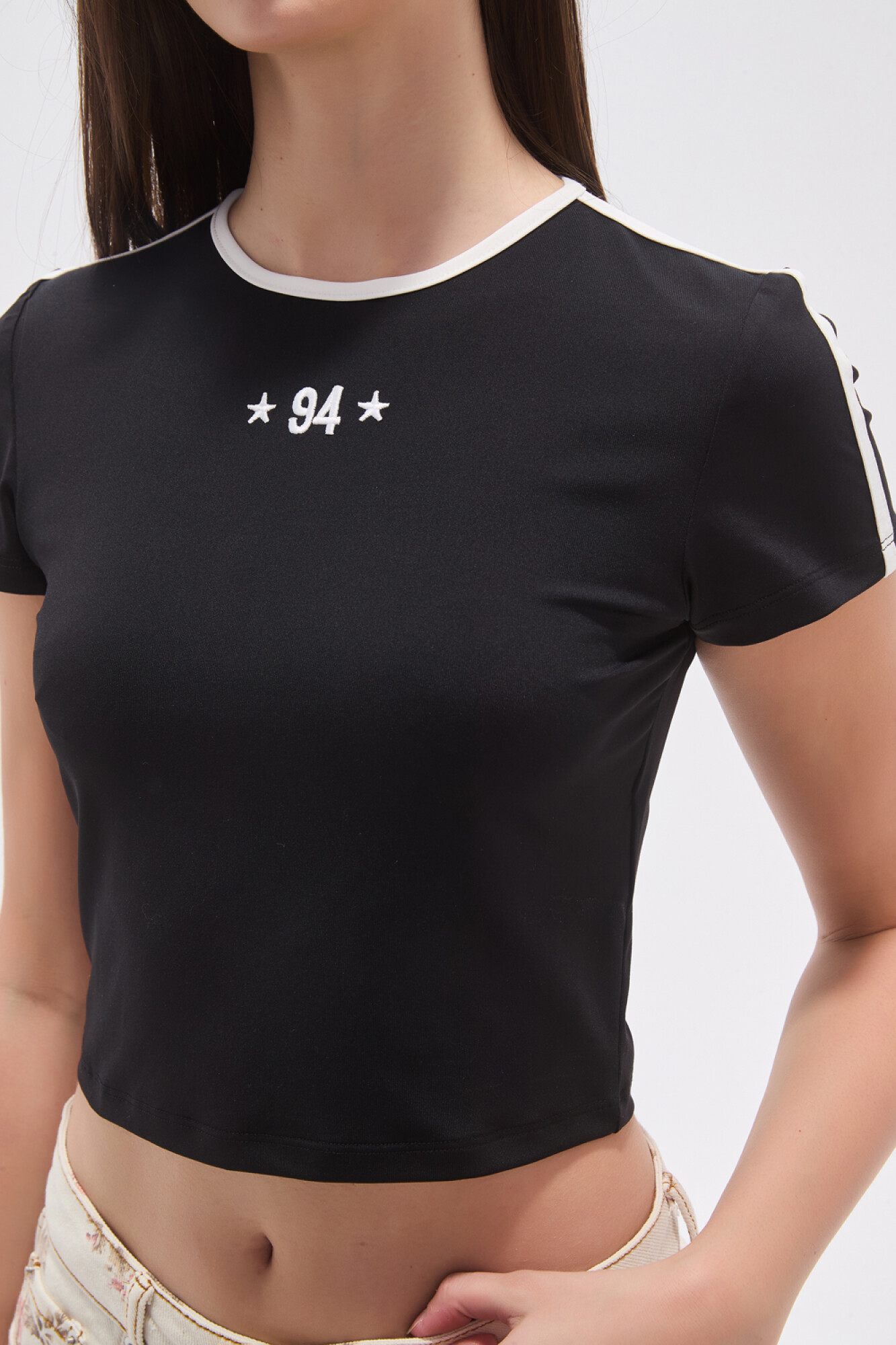 $ 254 Nuevos Recibilo en Remera cropped de poliester, recurso bordado y cuello a la base