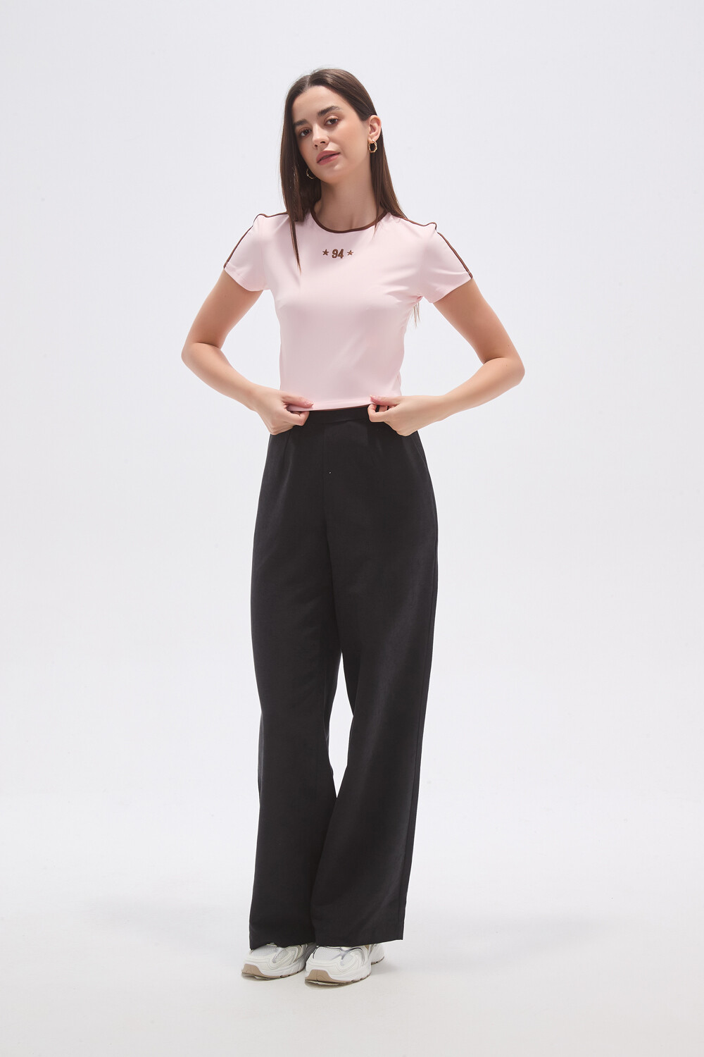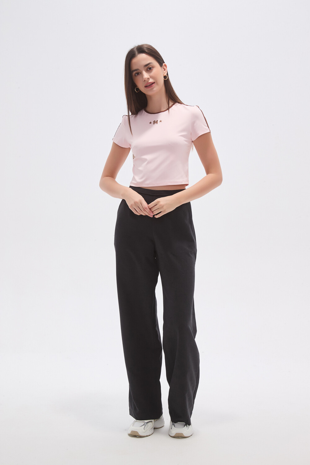 $ 254 Nuevos Recibilo en Remera cropped de poliester, recurso bordado y cuello a la base