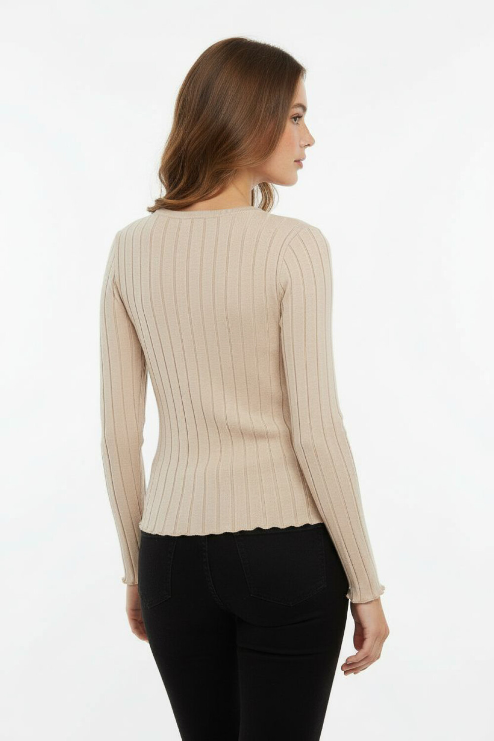Nuevos Recibilo en Remera manga larga de viscosa, entallado y cuello a la base