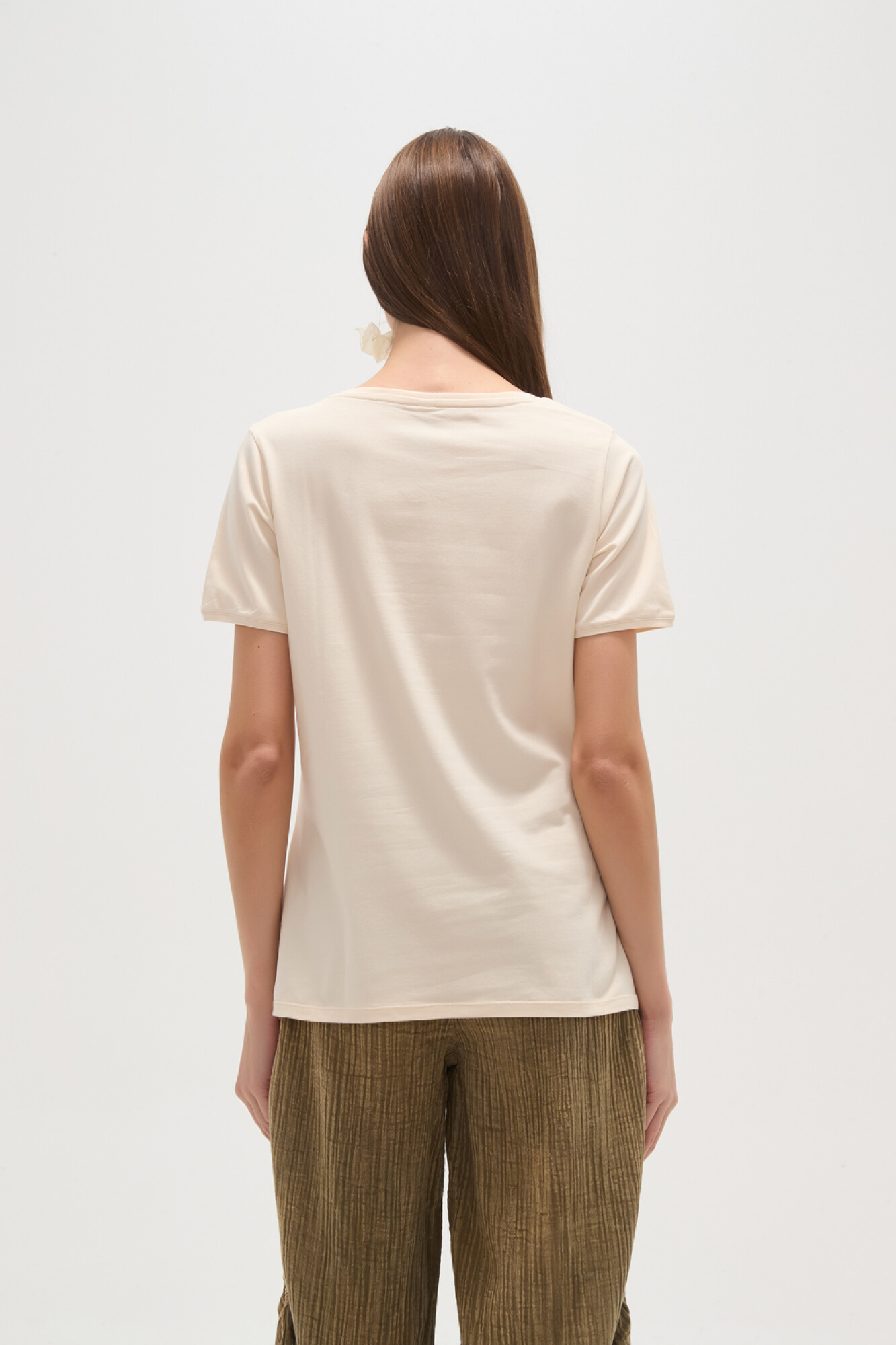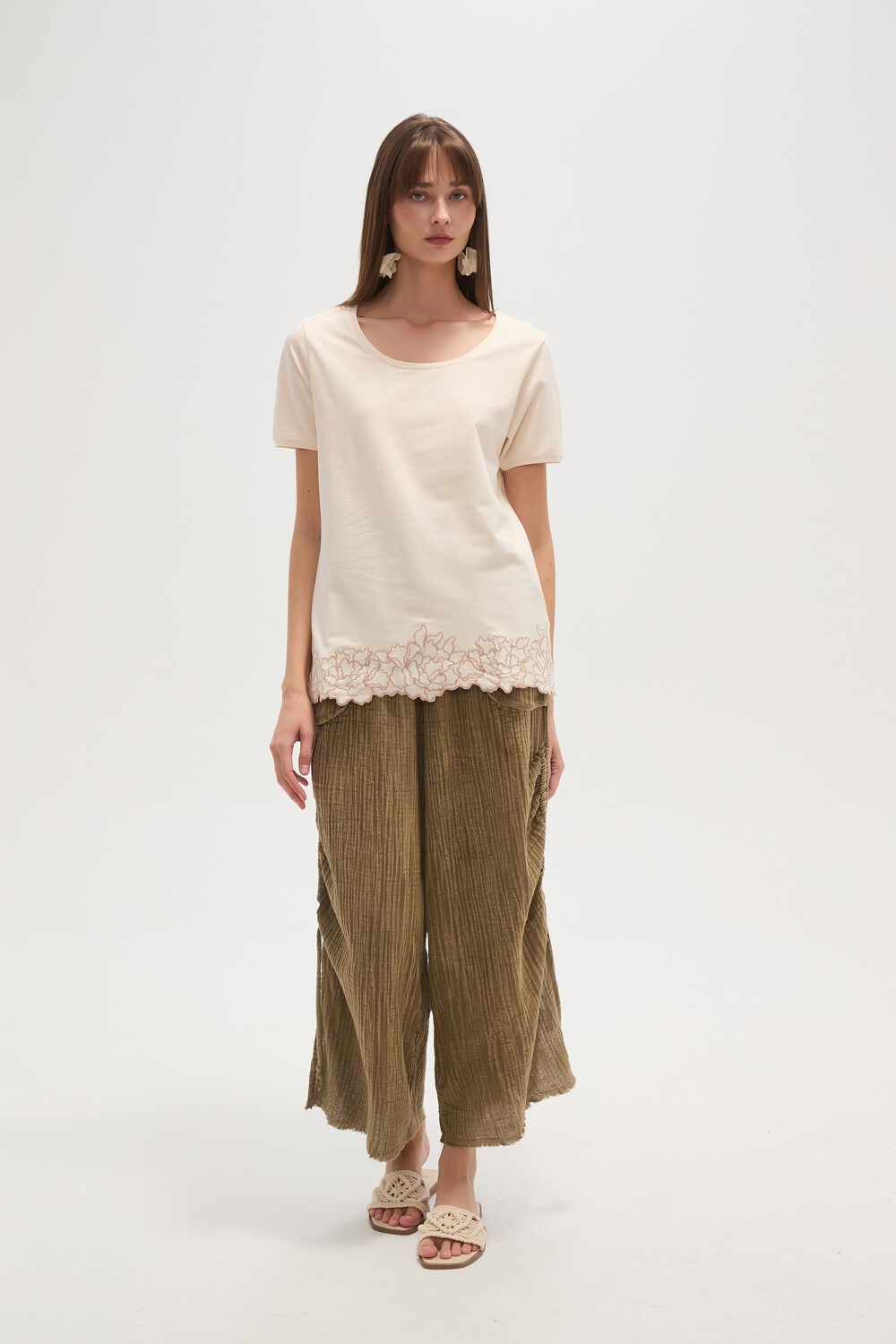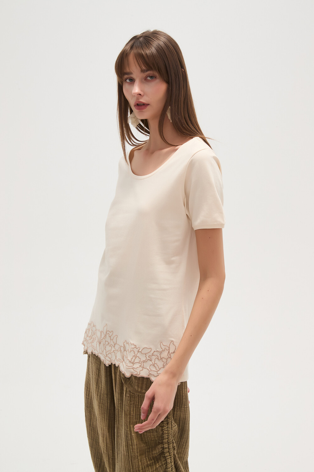 $ 479 Nuevos Remera manga corta de algodon, bordado y cuello a la base