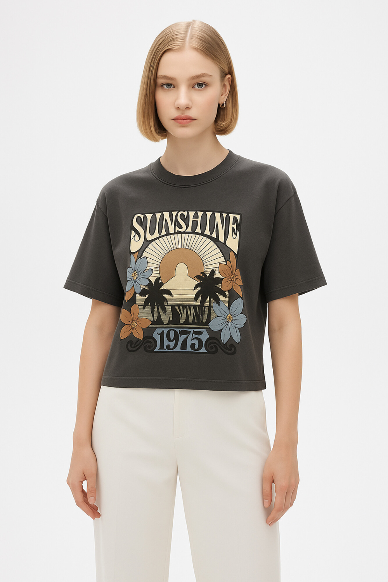 $ 271 Nuevos Recibilo en Remera manga corta de algodon, chest print, estampado, ancho y cuello a la base