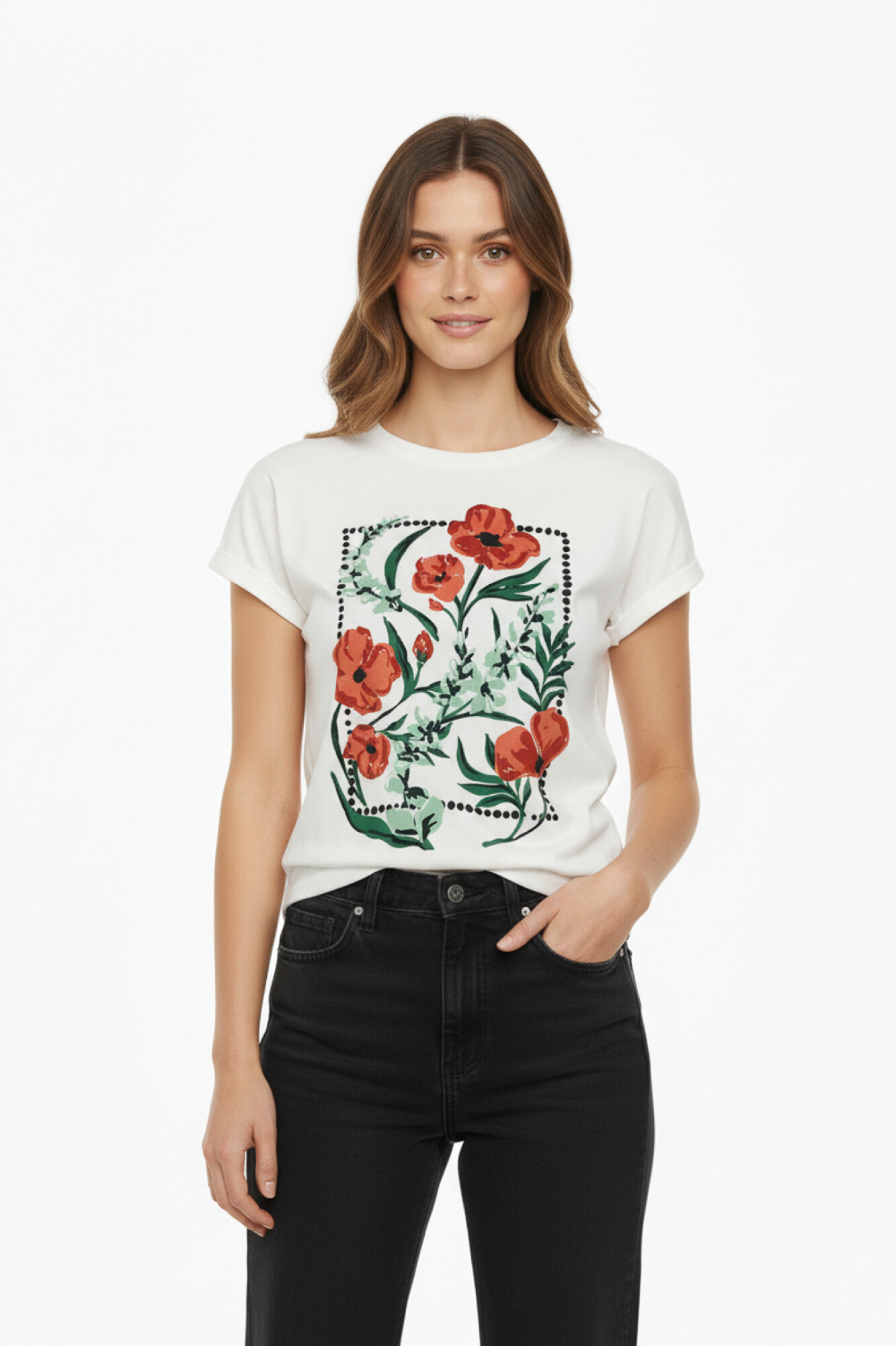 $ 239 Nuevos Remera manga corta de algodon, chest print, estampado, holgado y cuello redondo