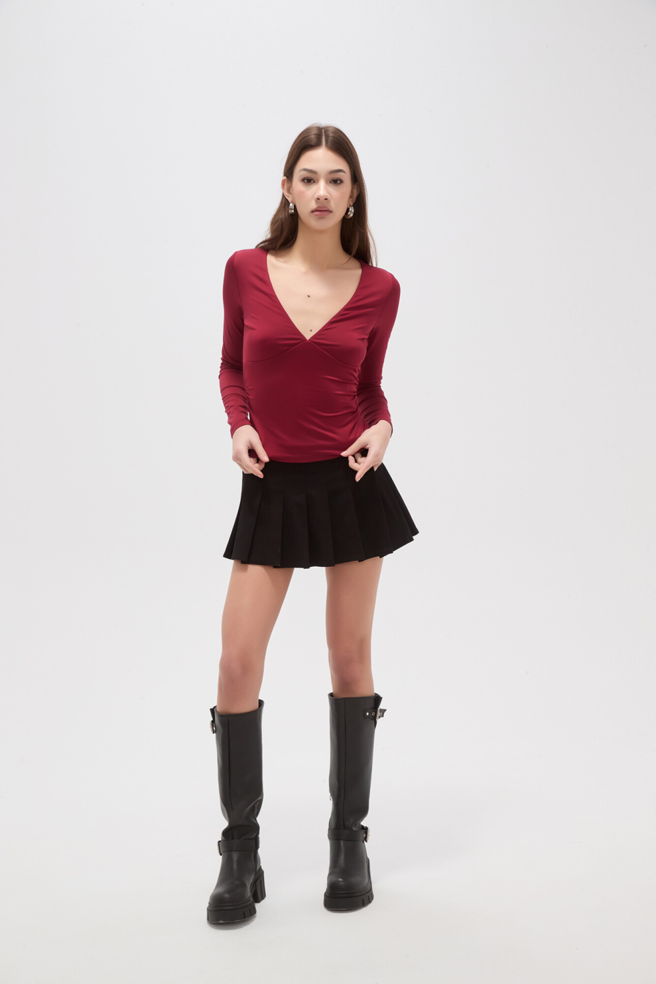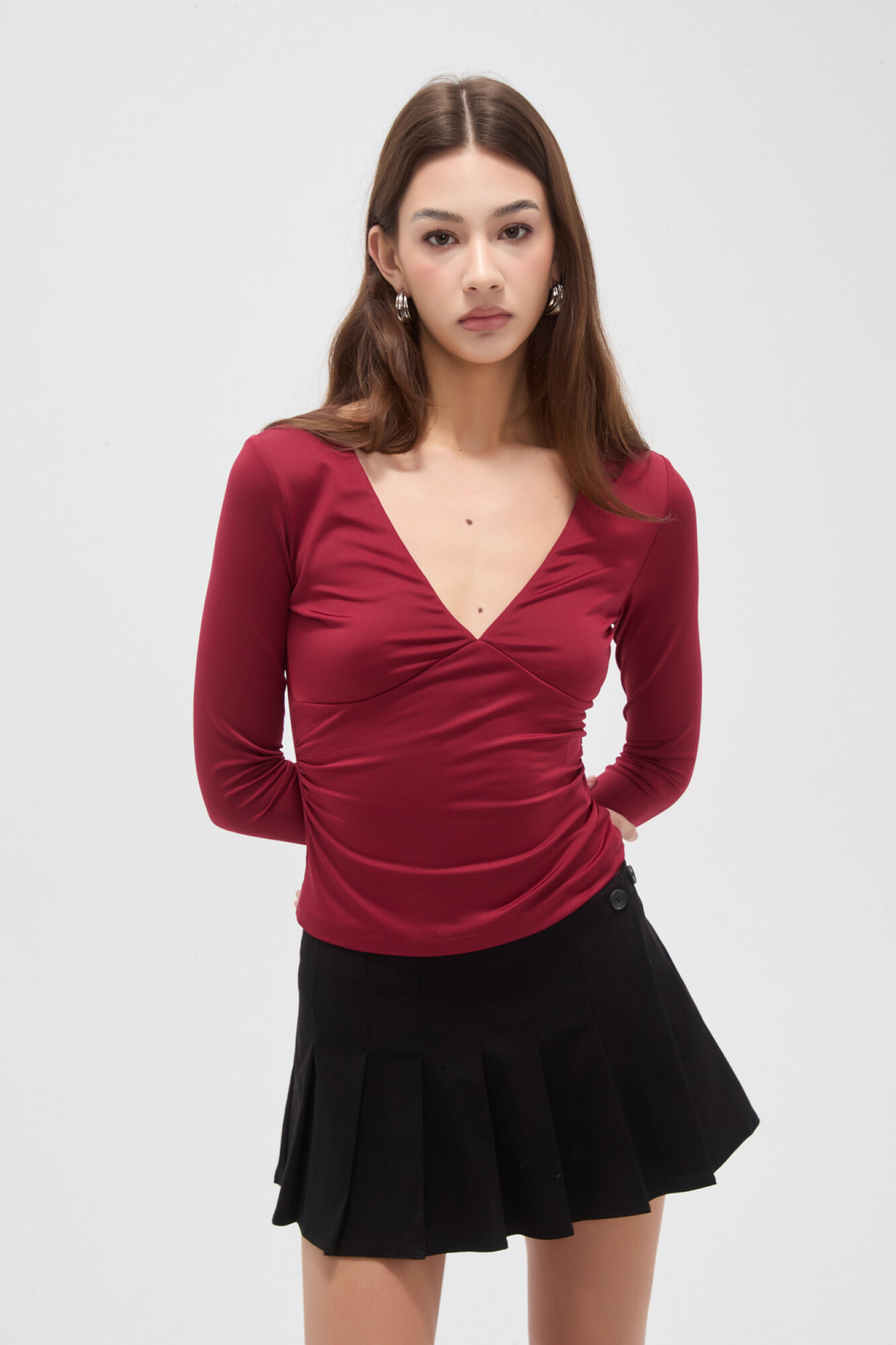 $ 611 Nuevos Remera manga larga de poliester, al cuerpo y cuello en v