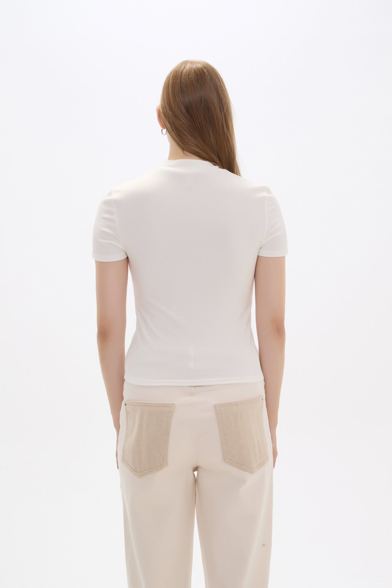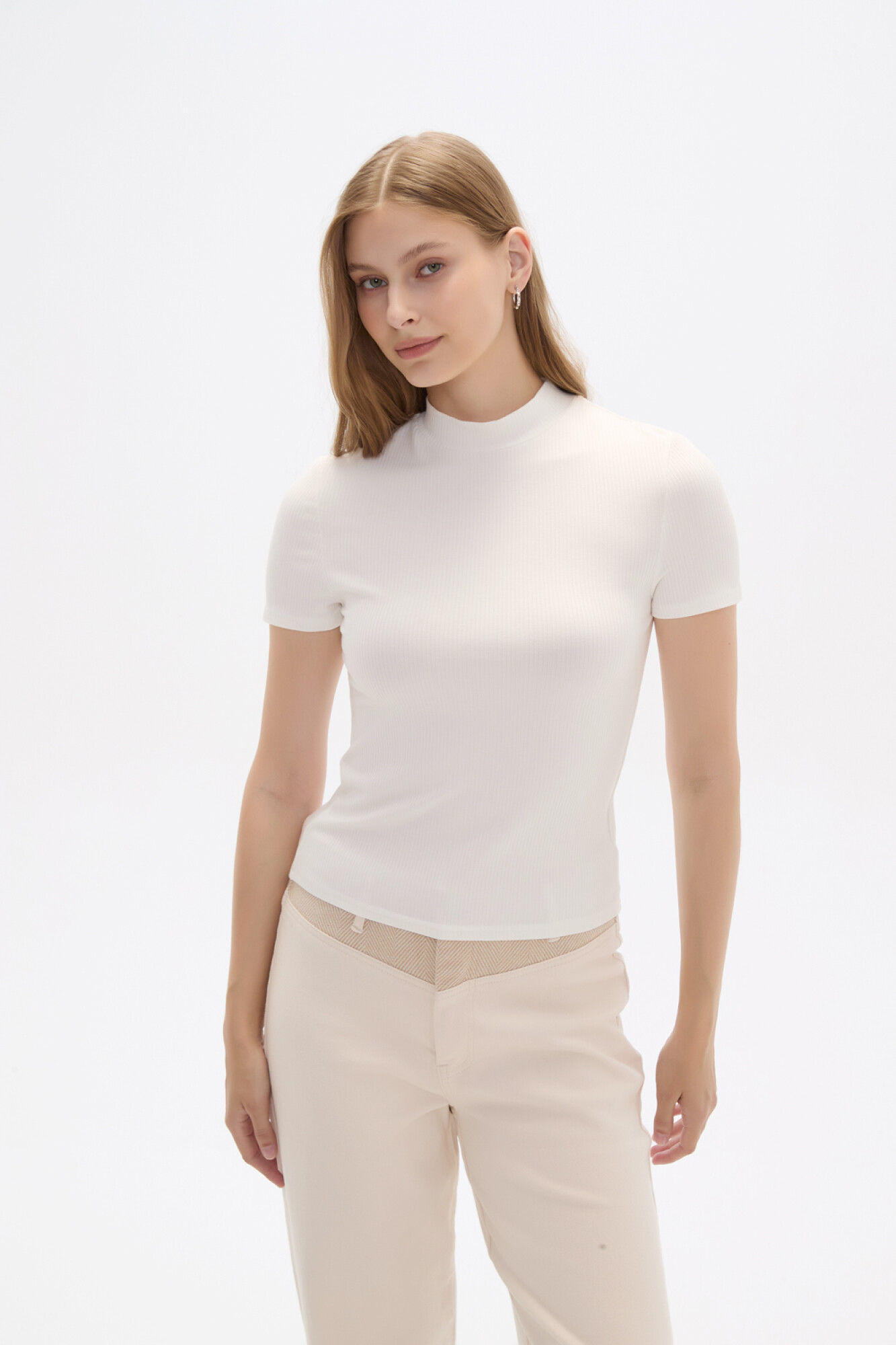 $ 359 Nuevos Remera manga corta de viscosa, punto canale, al cuerpo y cuello alto