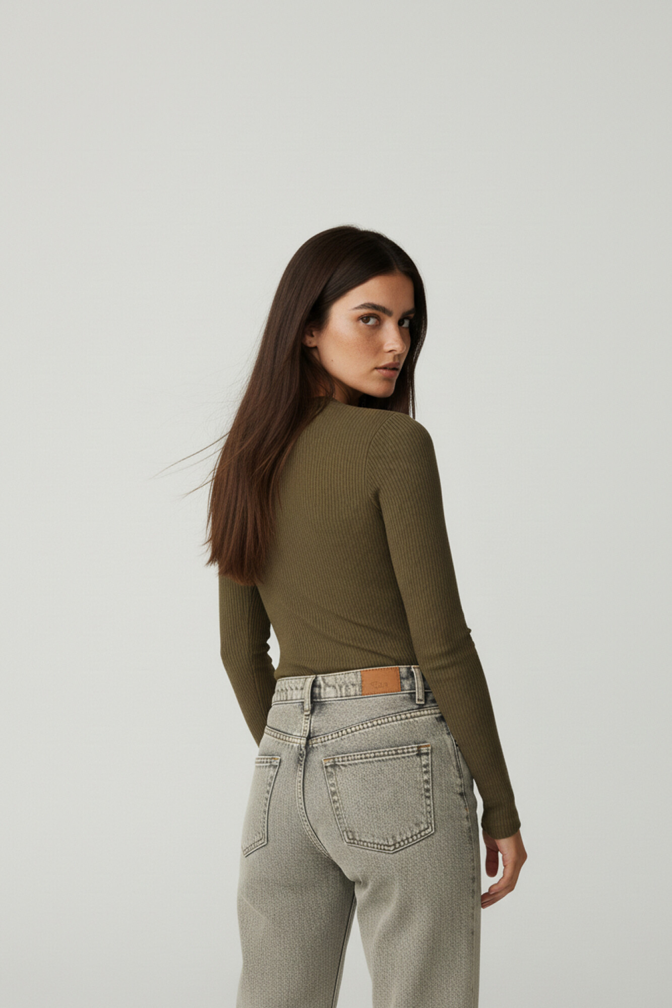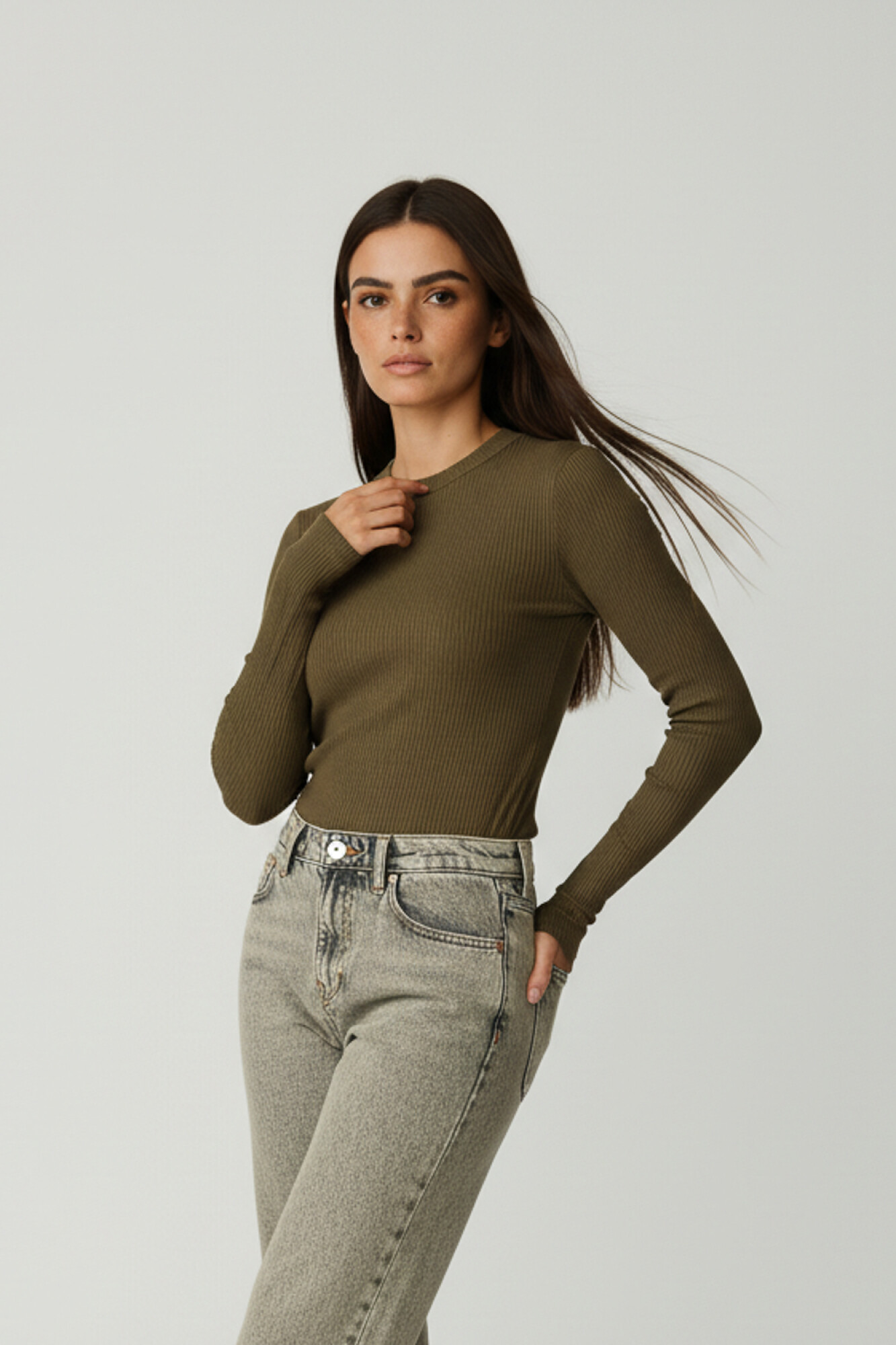 Nuevos Recibilo en Remera manga larga de viscosa + elastano, punto canale, al cuerpo y cuello alto