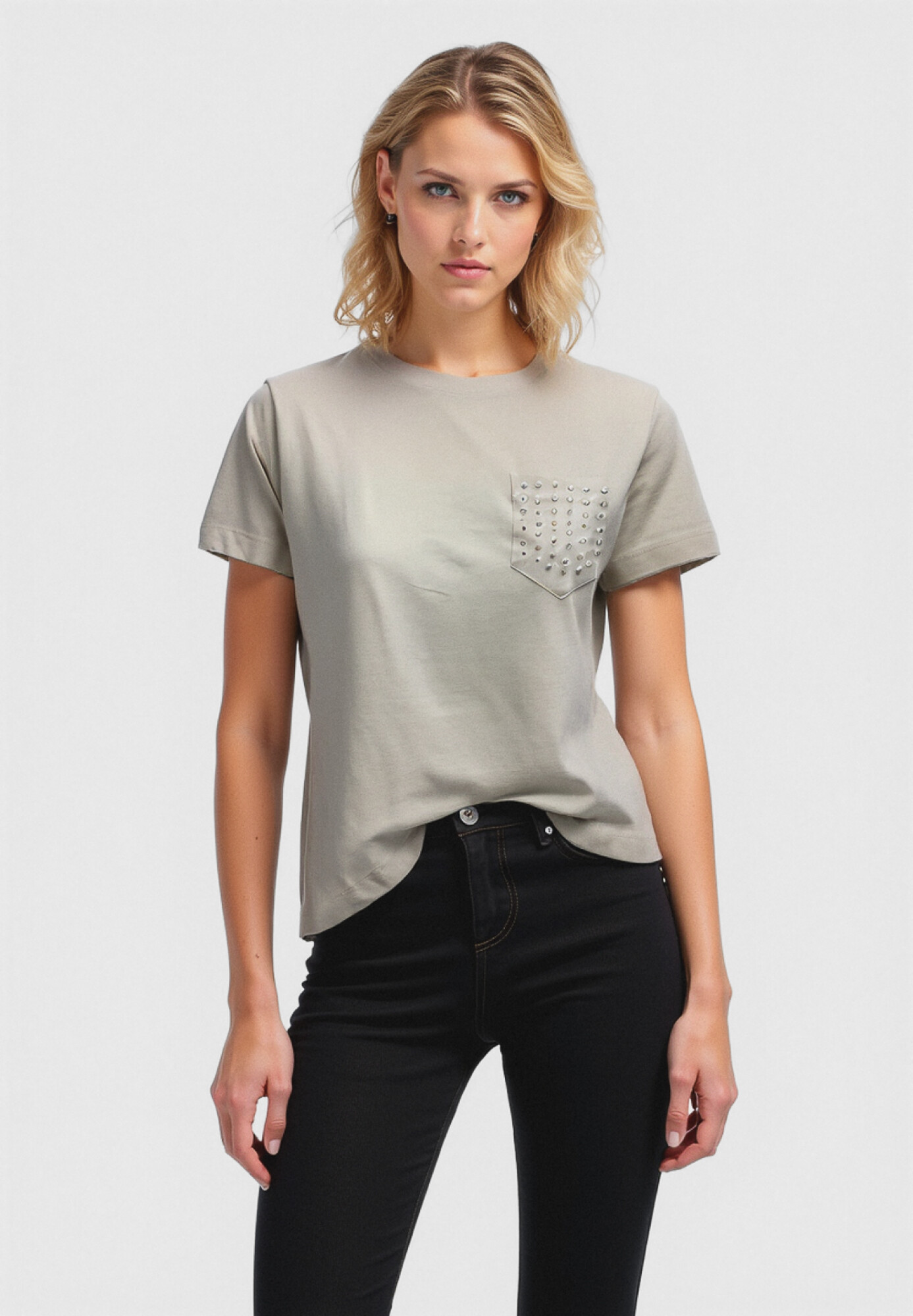 Nuevos Recibilo en Remera manga corta de algodon, apliques, con bolsillo, holgado, con cuentas y cuello redondo