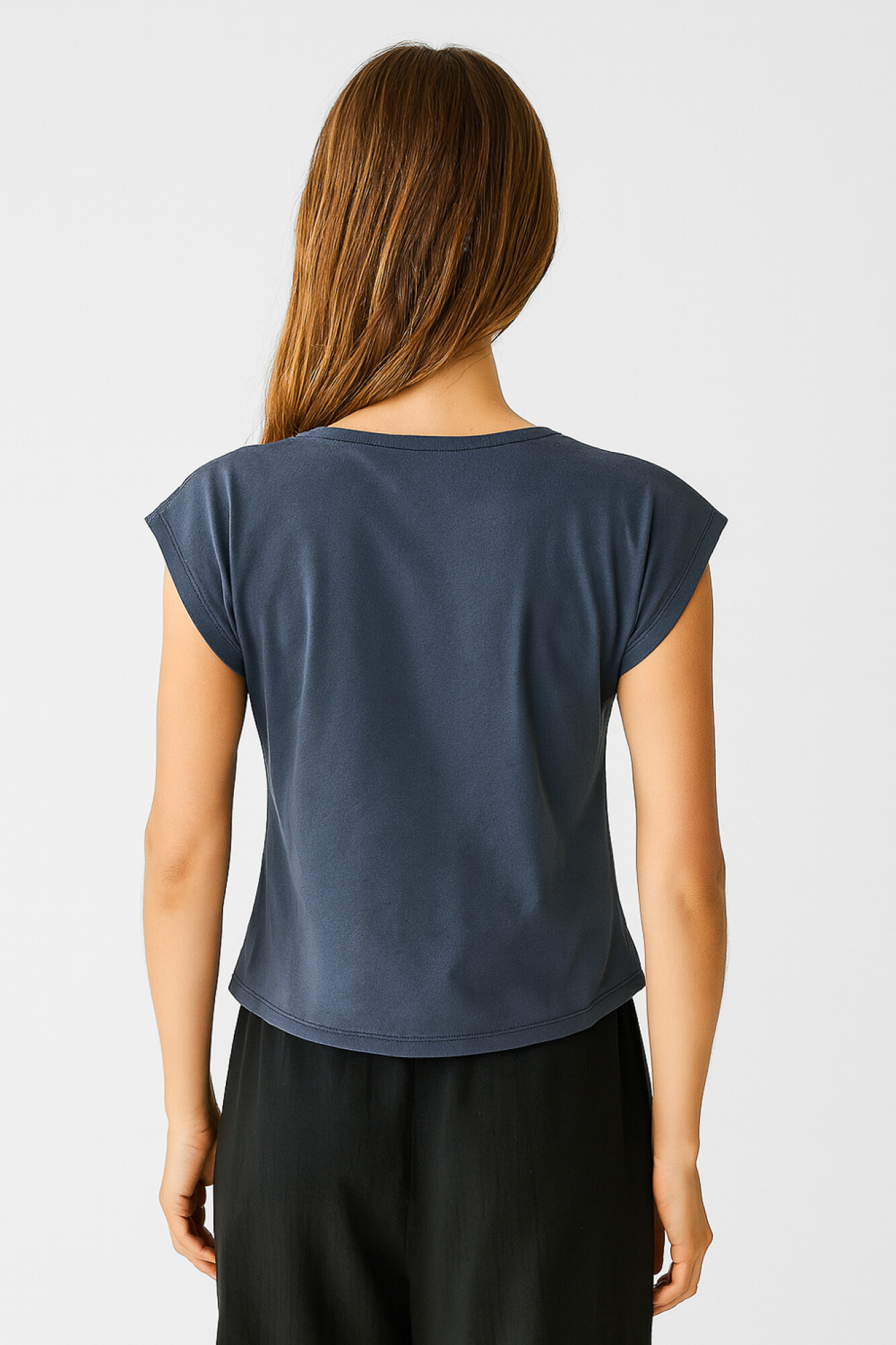 $ 271 Nuevos Recibilo en Remera manga corta de algodon, recurso puff, estampado, al cuerpo y cuello en v