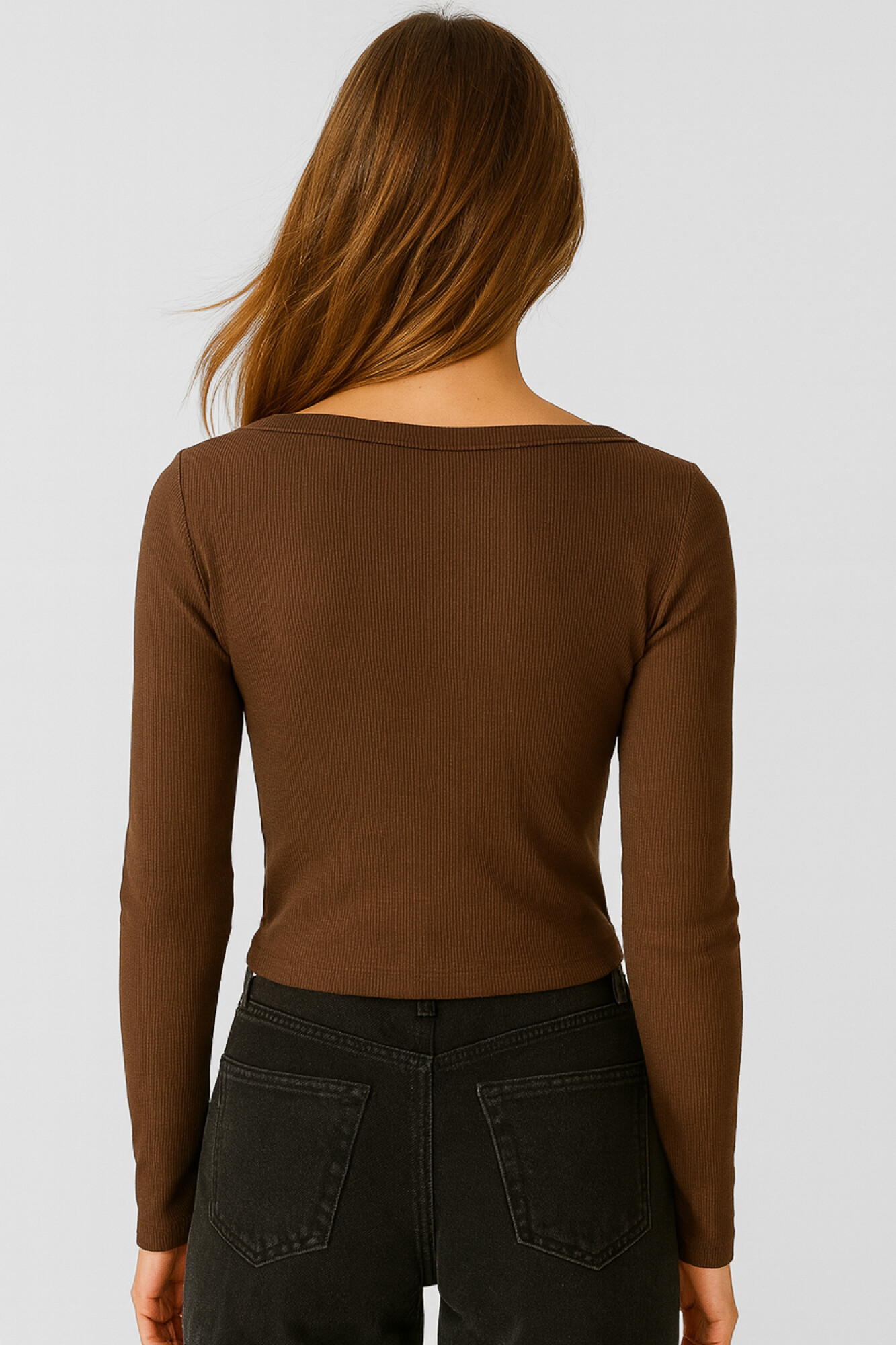 Nuevos Remera manga larga de algodon, al cuerpo y cuello cuadrado