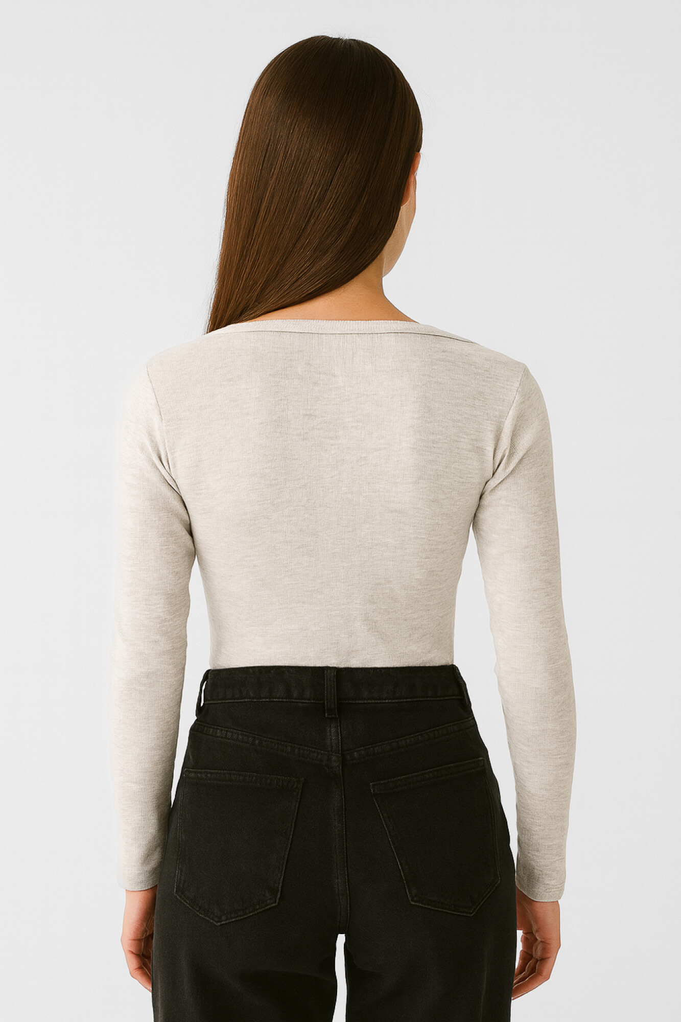 Nuevos Recibilo en Remera manga larga de algodon, al cuerpo y cuello cuadrado
