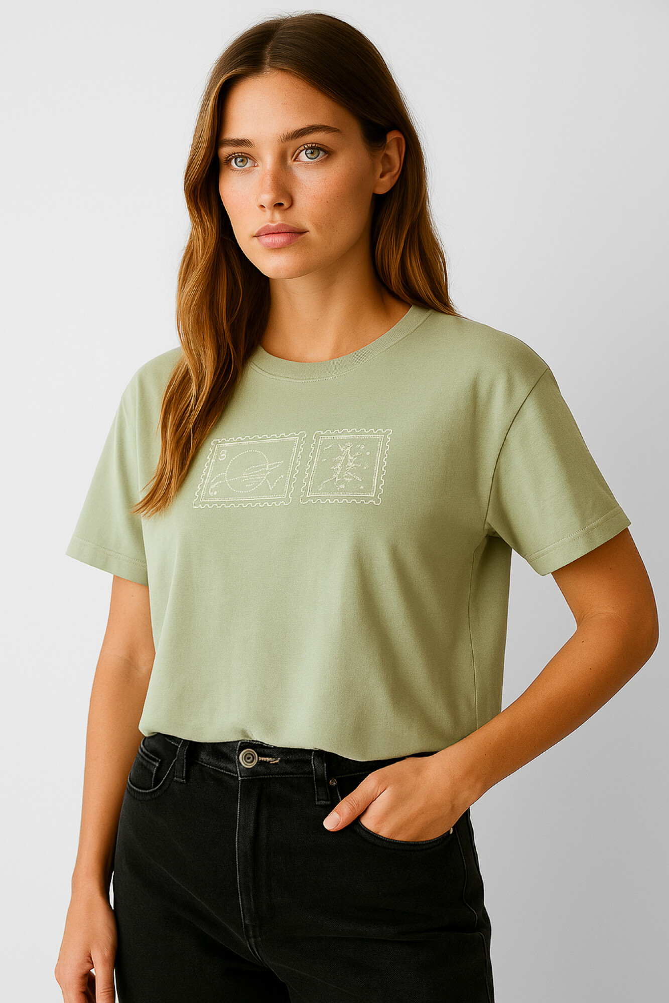 $ 407 Nuevos Recibilo en Remera manga corta de algodon, recurso bordado, bordado, holgado y cuello a la base
