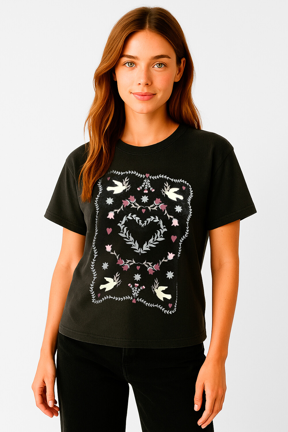 Nuevos Remera manga corta de algodon, chest print, estampado, holgado y cuello redondo