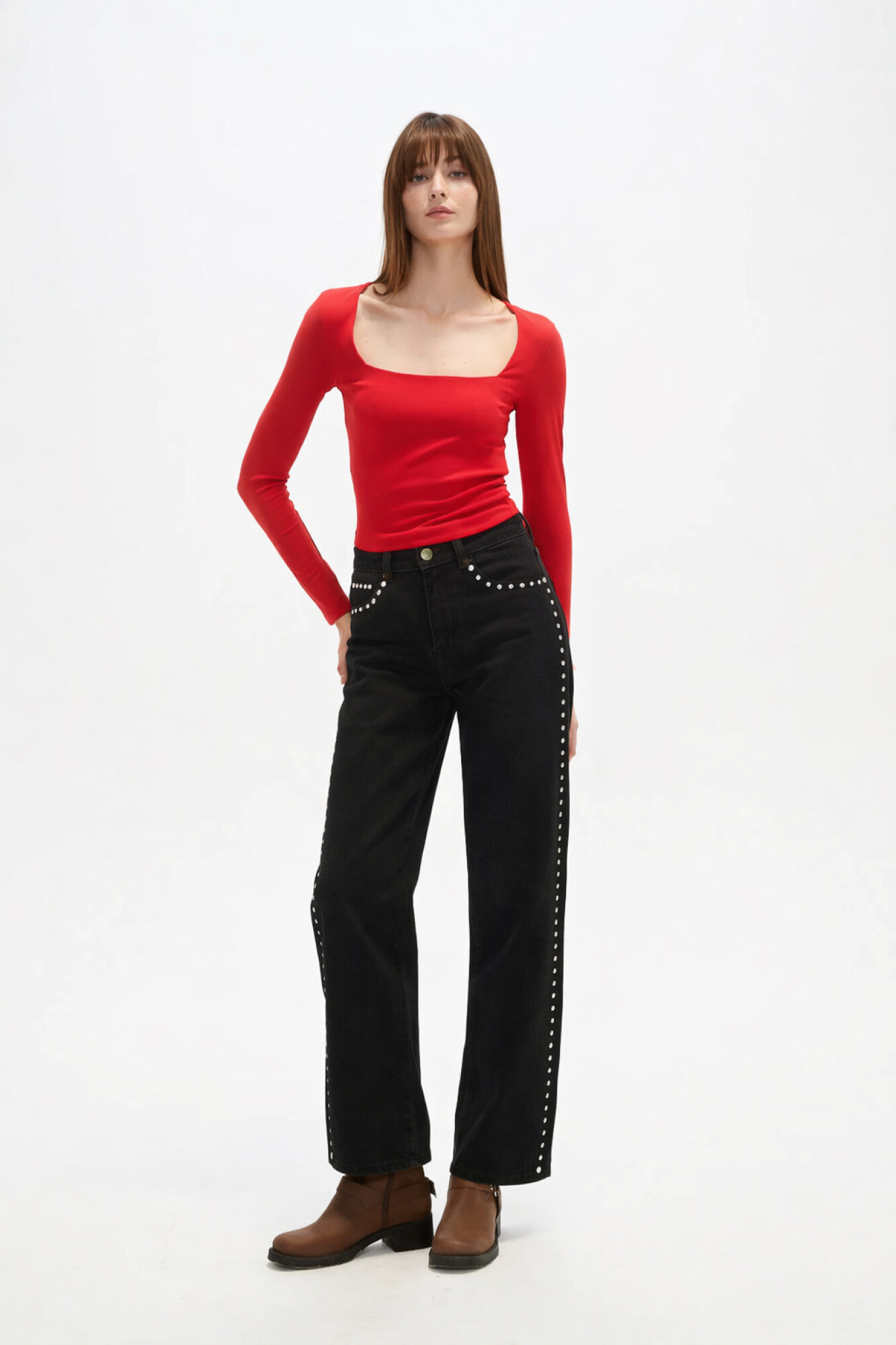 $ 543 Nuevos Recibilo en Remera manga larga de poliester, al cuerpo y cuello cuadrado