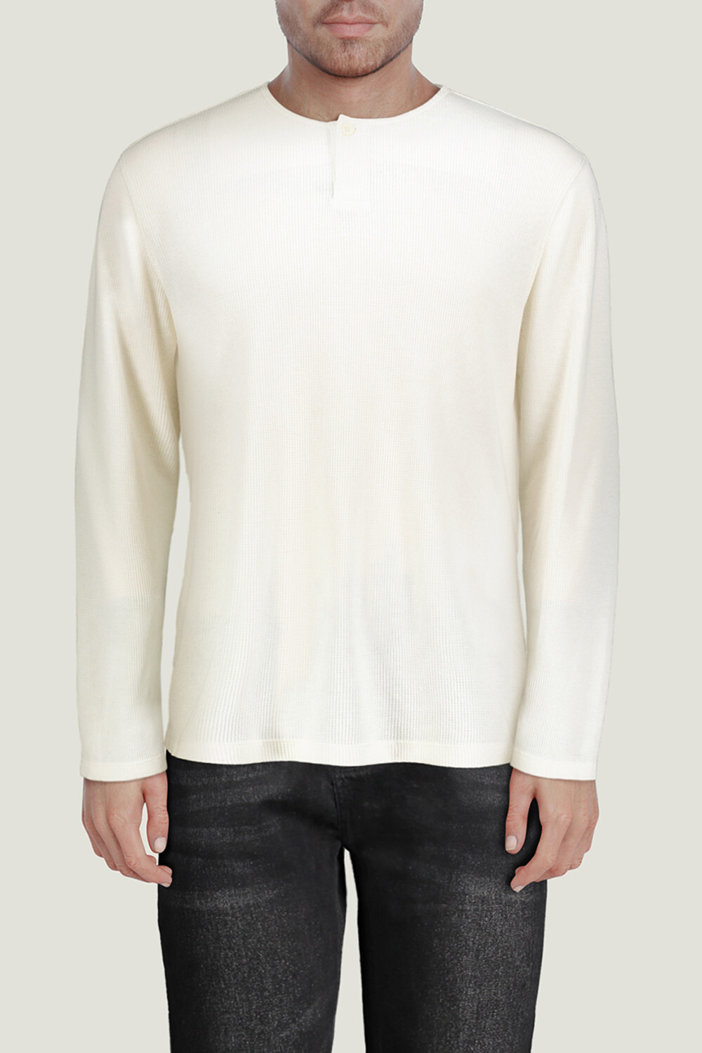 Sale Remera manga larga de algodon, holgado, con botones y cuello a la base