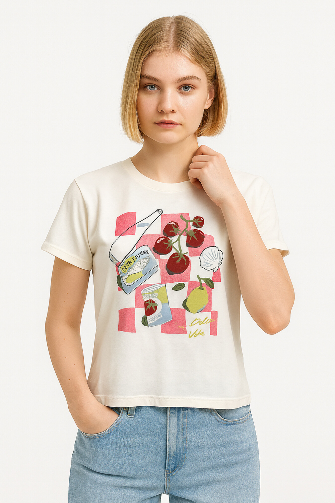 $ 271 Nuevos Remera manga corta de algodon, recurso glitter, estampado, al cuerpo y cuello a la base