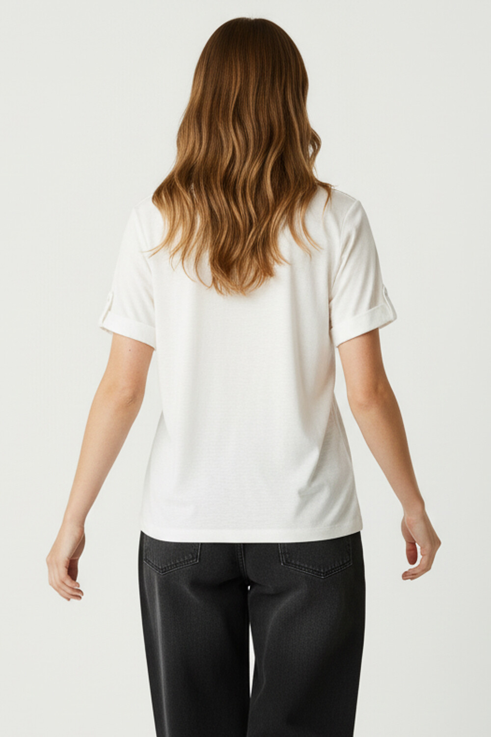 Nuevos Recibilo en Remera manga corta de algodon, recurso bordado, bordado y cuello en v