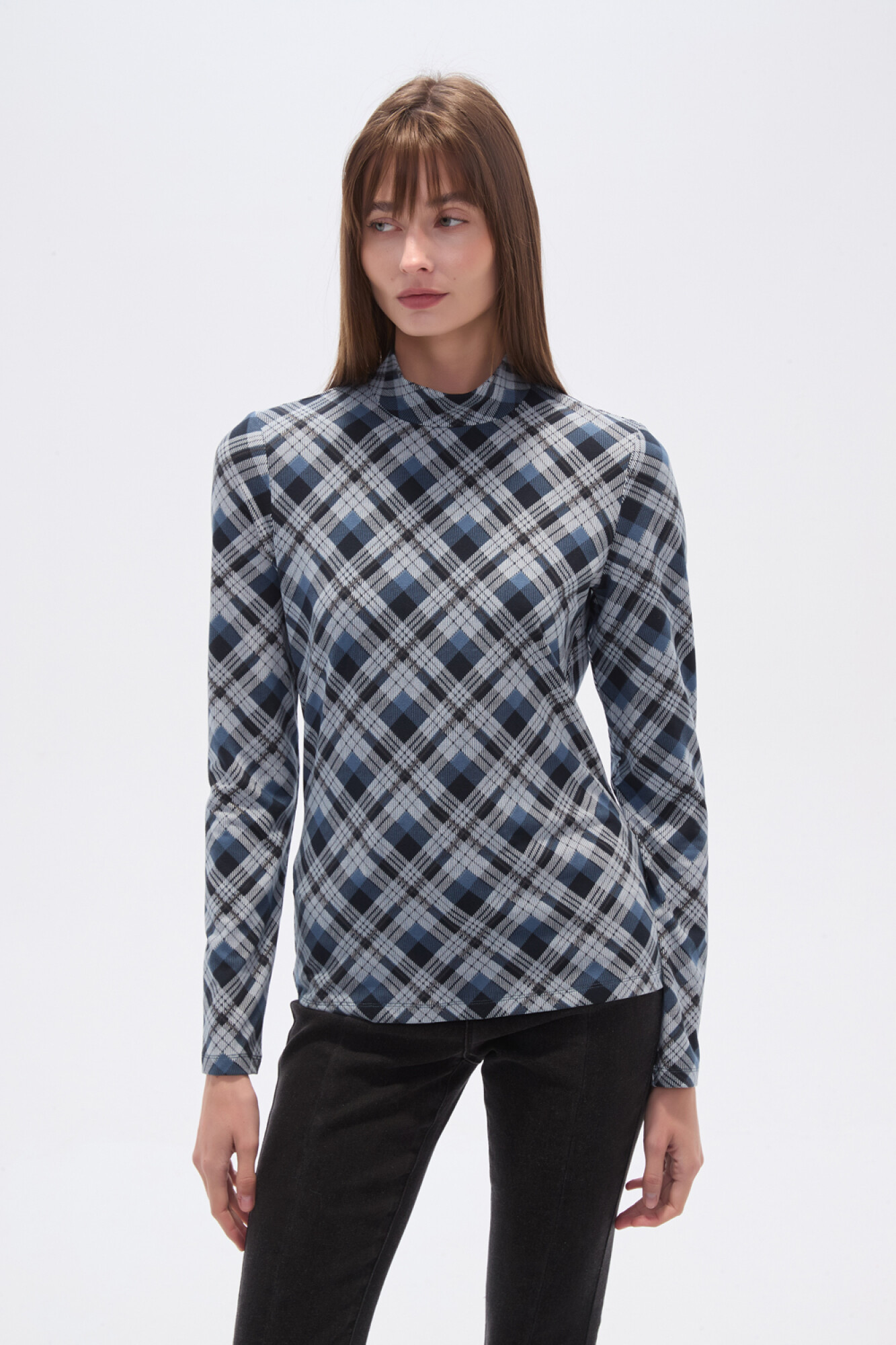 $ 419 Nuevos Recibilo en Remera manga larga de viscosa + elastano, aop, estampado, al cuerpo y cuello polera