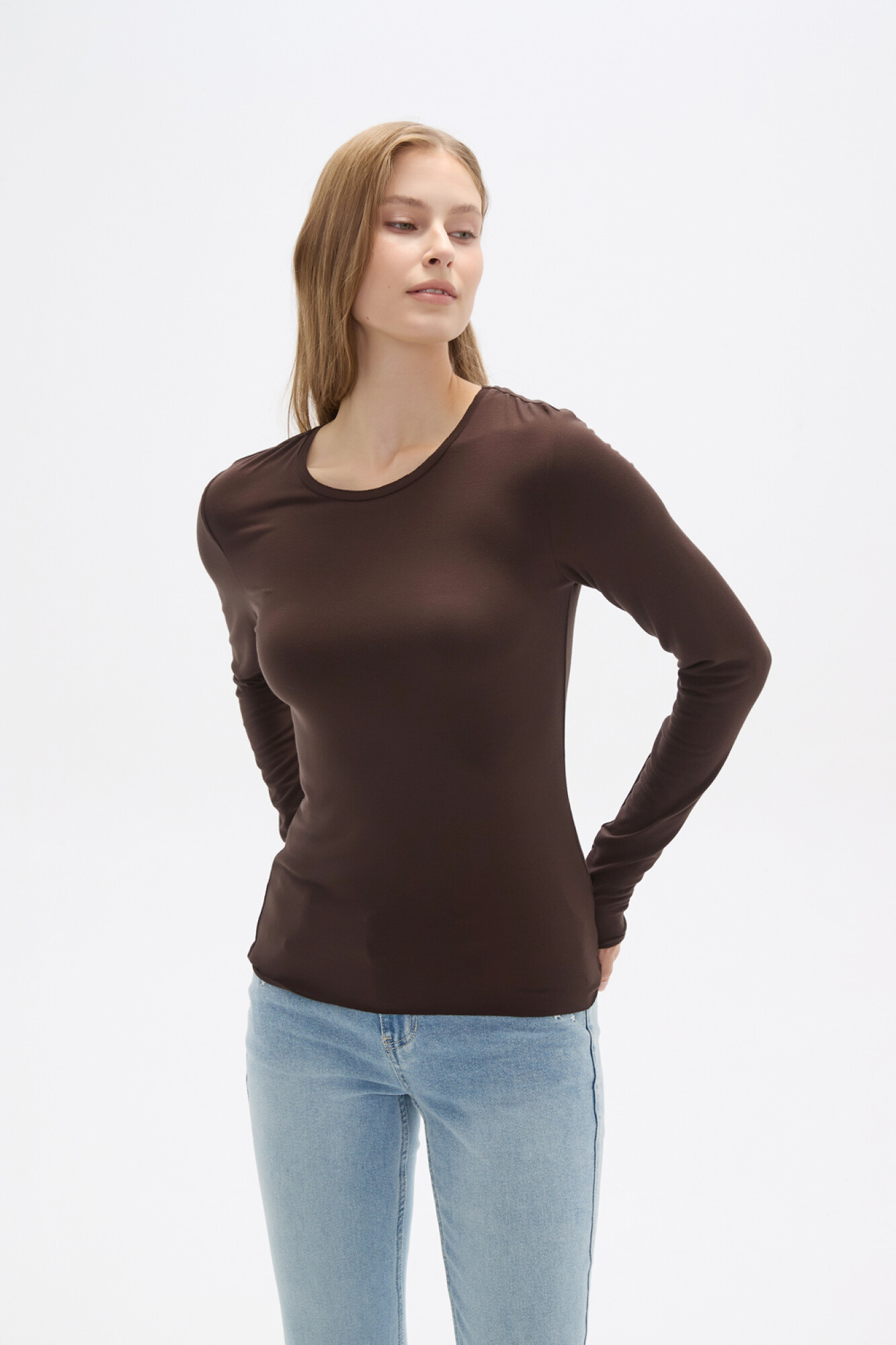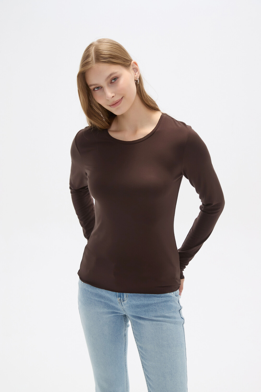 Nuevos Recibilo en Remera manga larga de lyocell, al cuerpo y cuello redondo