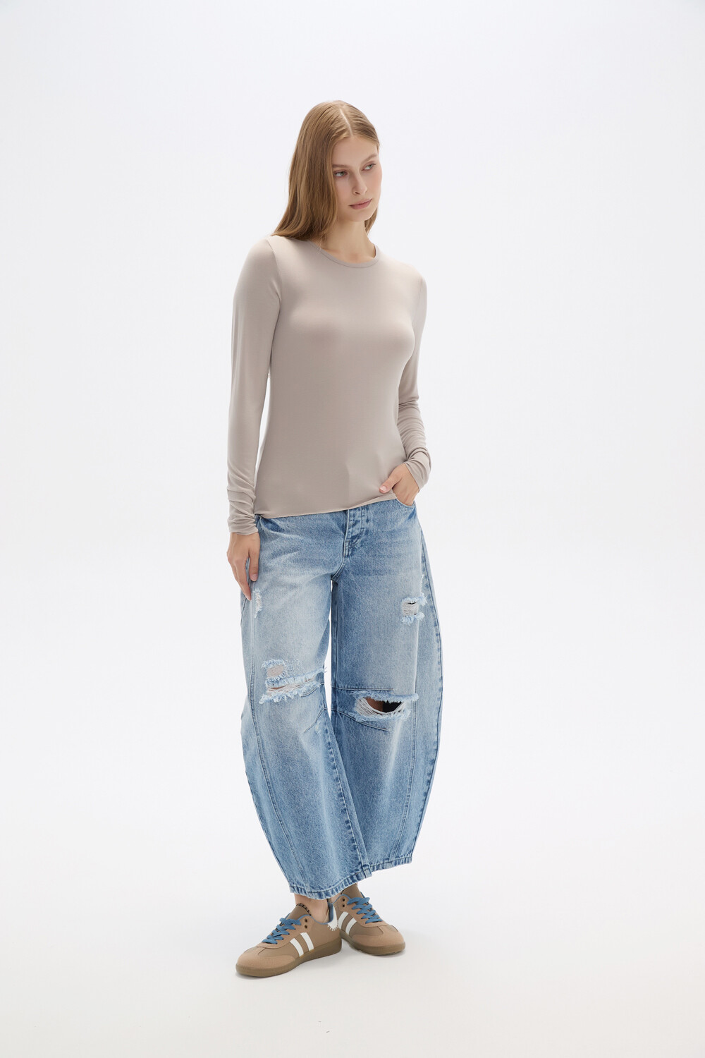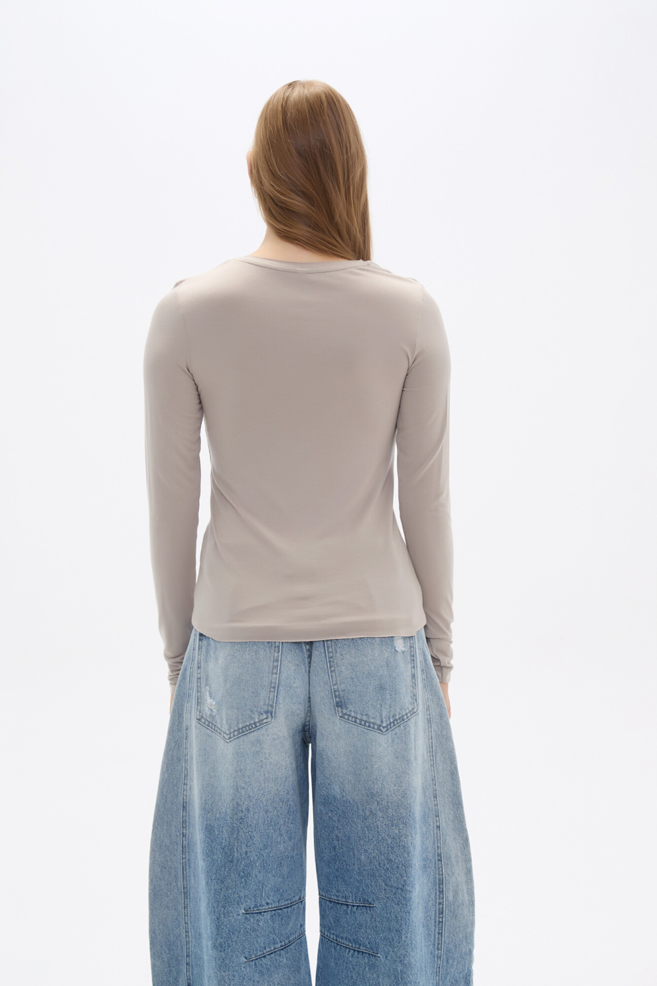 Nuevos Recibilo en Remera manga larga de lyocell, al cuerpo y cuello redondo