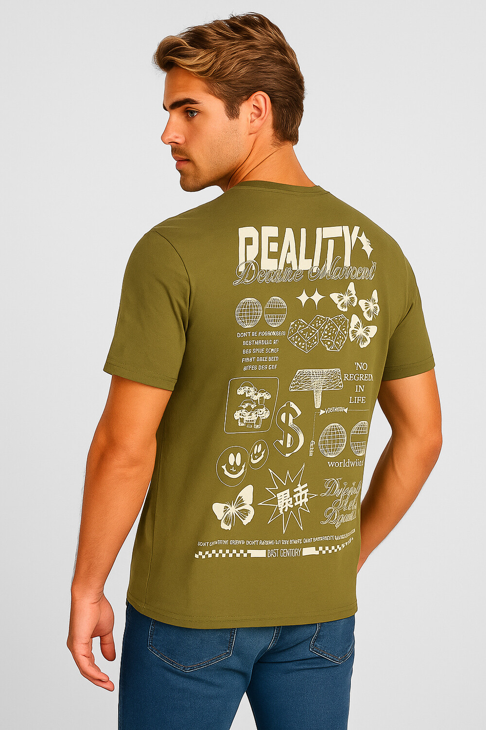 $ 339 Sale Remera manga corta de algodon, estampado, holgado y cuello redondo