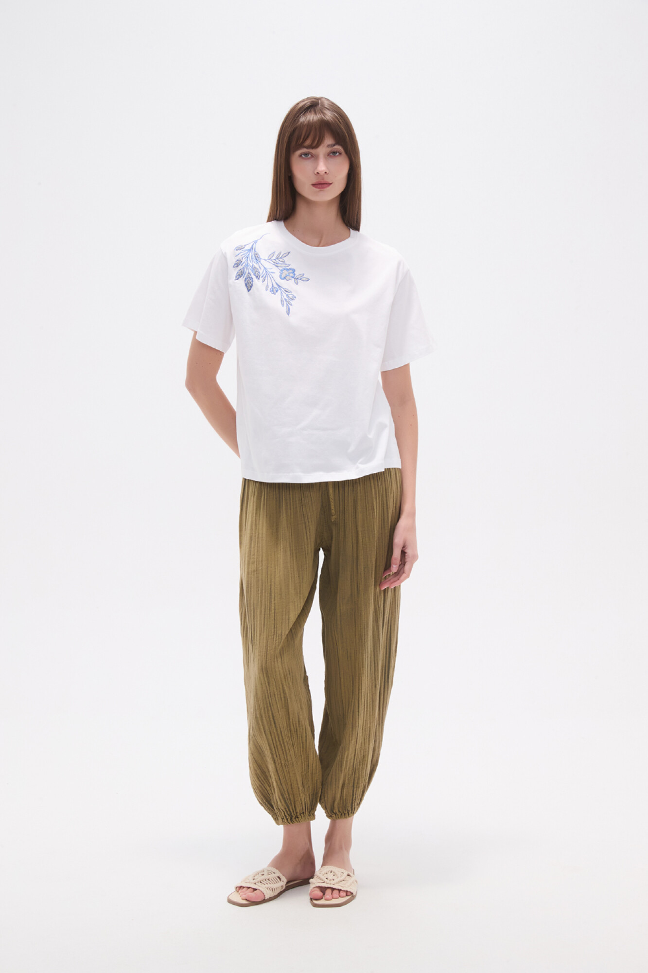 $ 543 Nuevos Remera manga corta, recurso bordado, bordado, holgado y cuello a la base