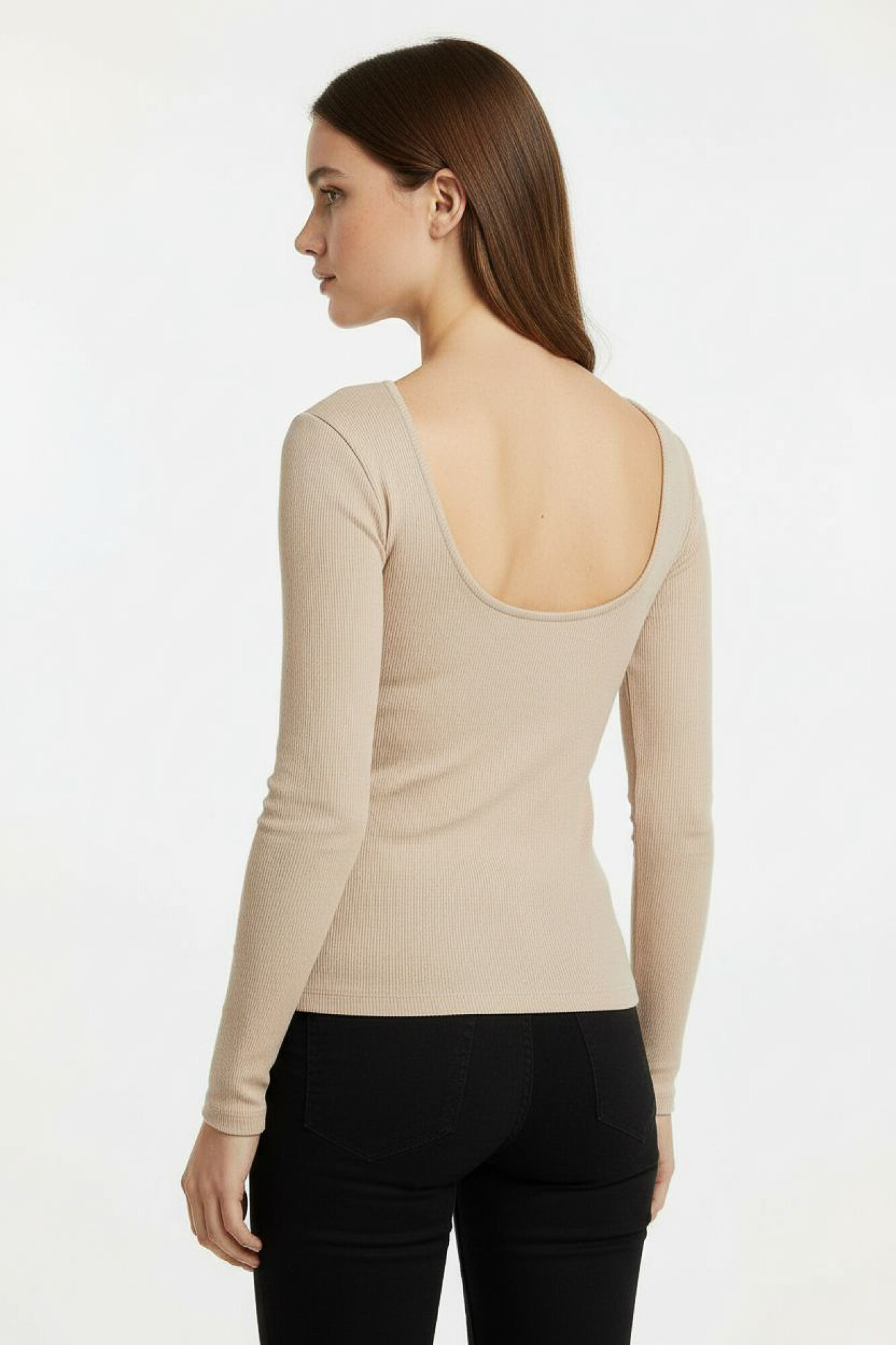 $ 407 Nuevos Recibilo en Remera manga larga de algodon, abertura, al cuerpo y cuello bote