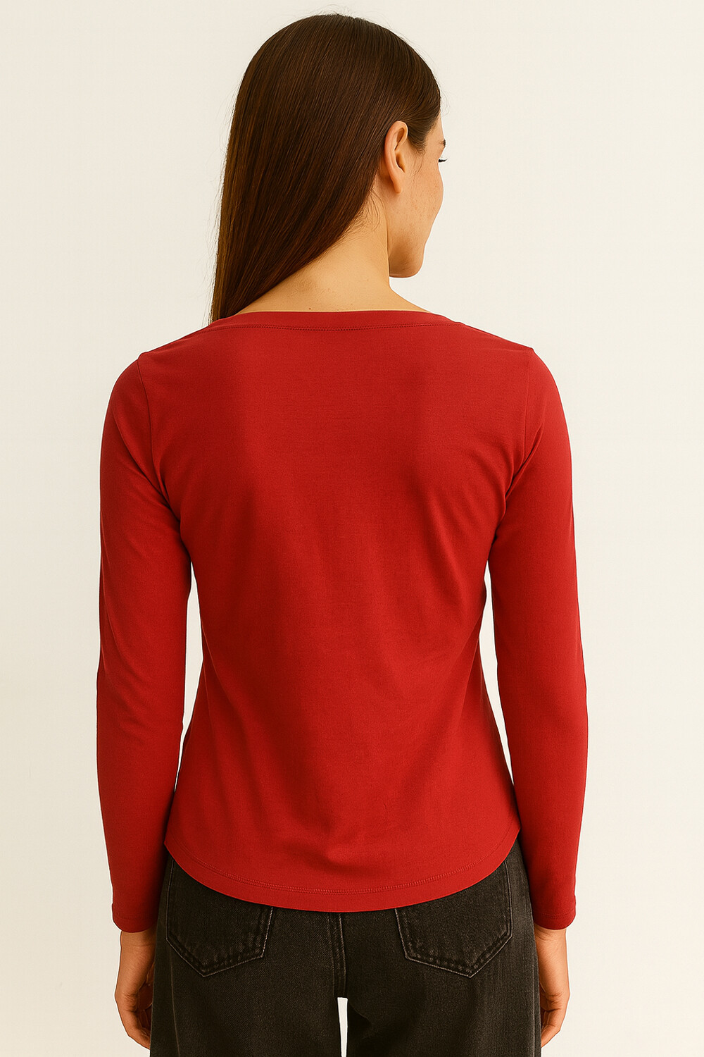 $ 318 Nuevos Remera manga larga de algodon, liso, al cuerpo y cuello redondo