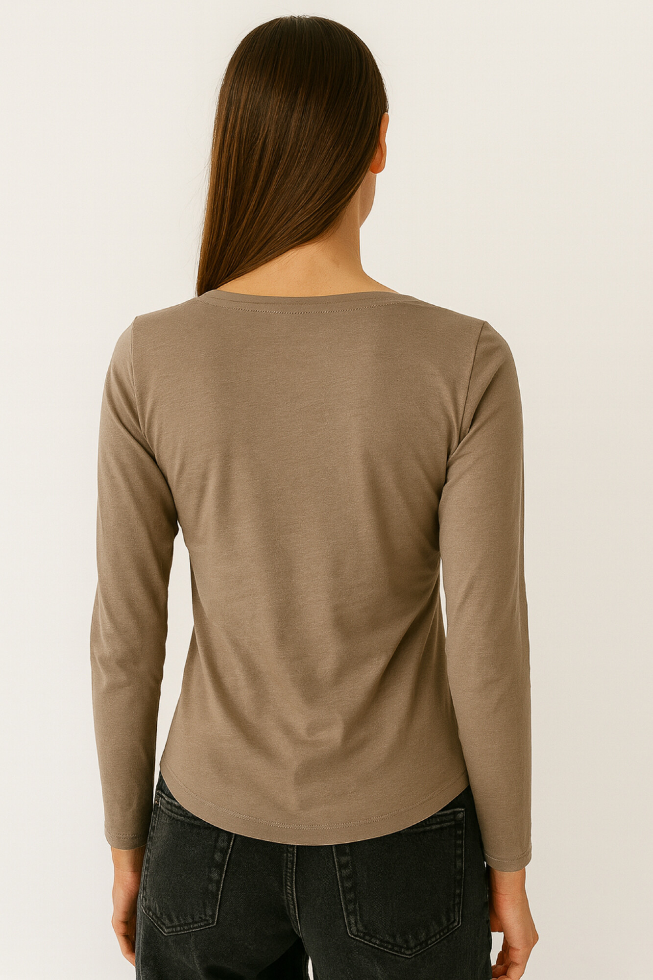 $ 318 Nuevos Remera manga larga de algodon, liso, al cuerpo y cuello redondo