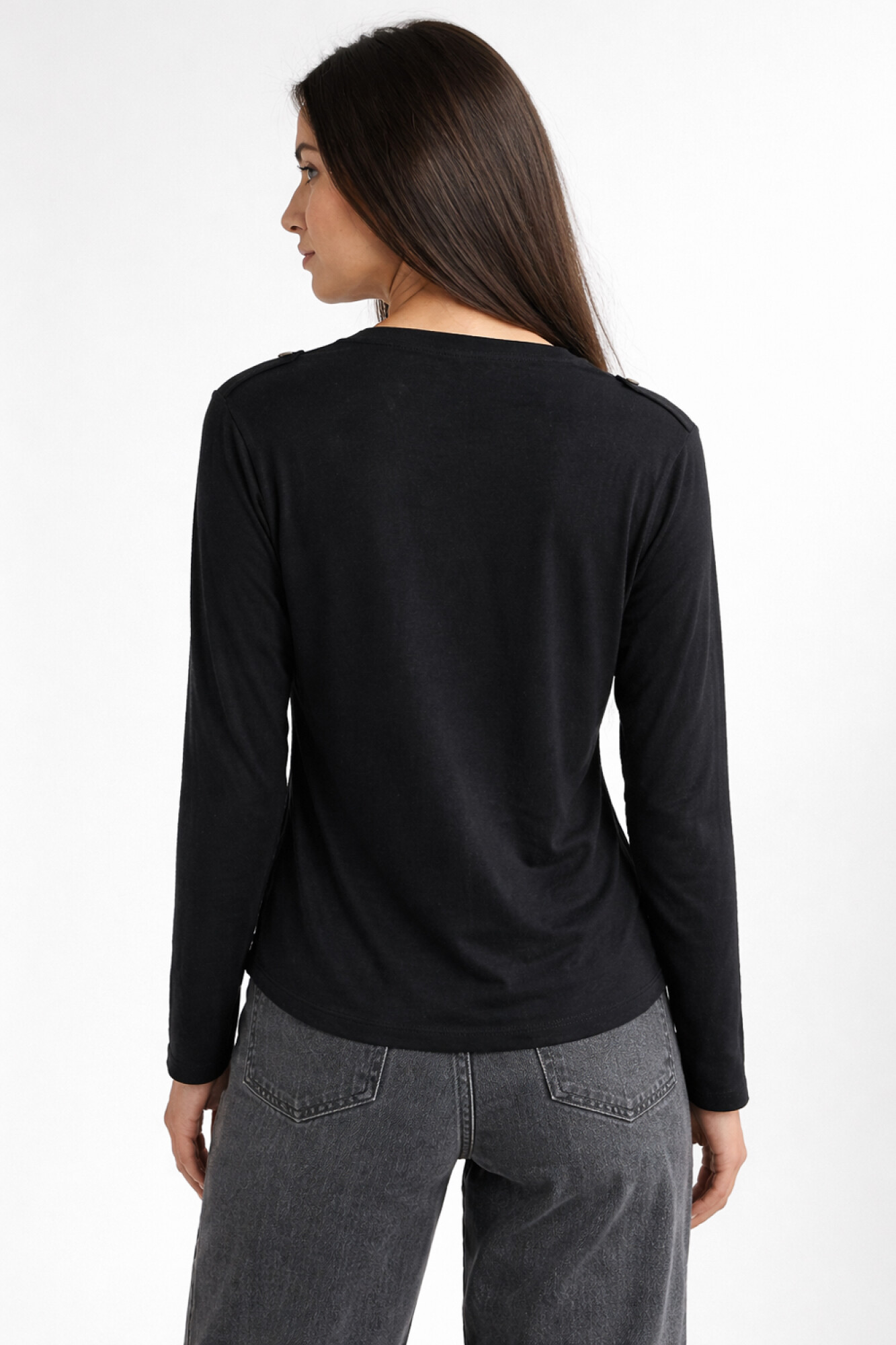 $ 543 Nuevos Remera manga larga de viscosa, con botones y cuello en v