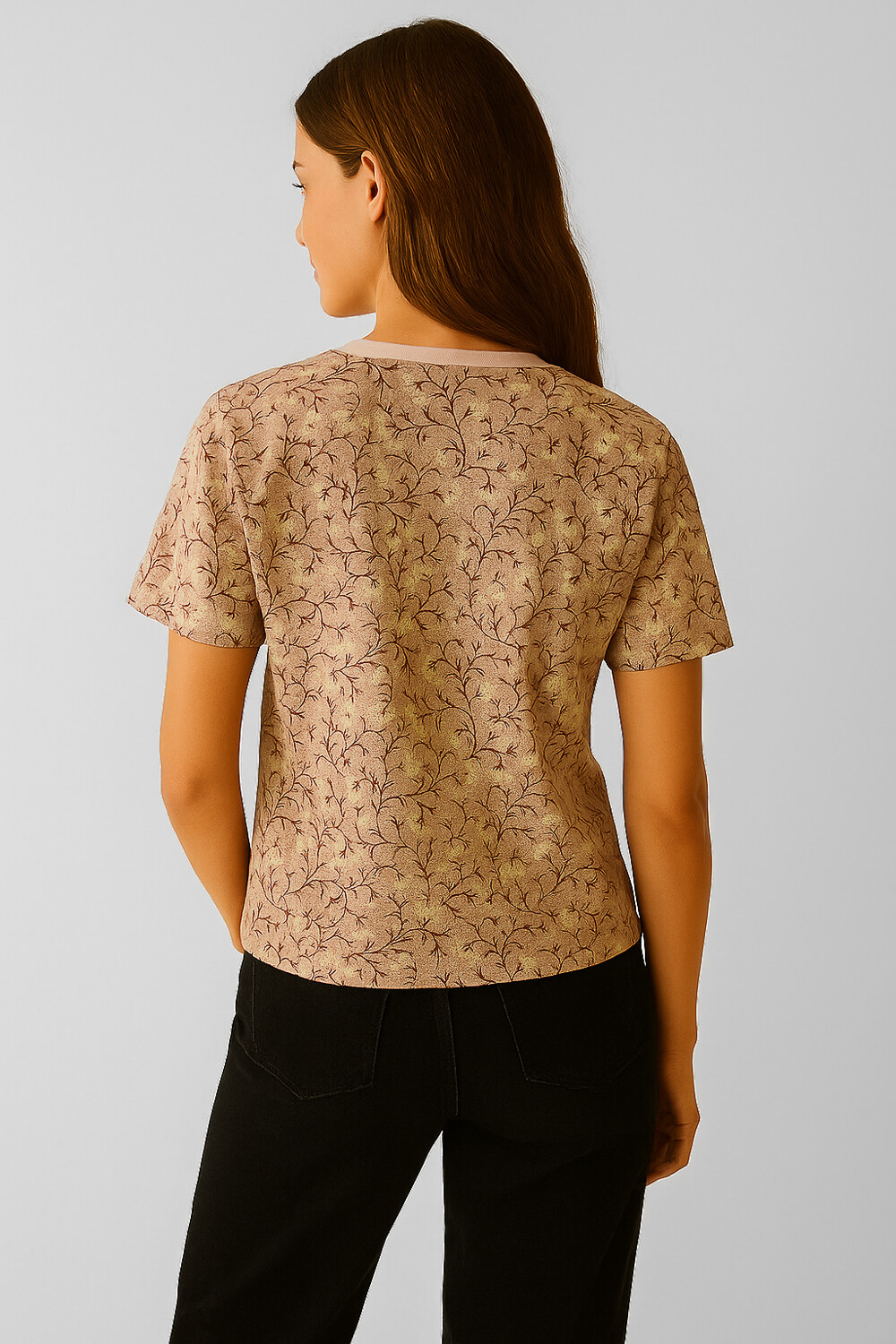$ 169 Sale Recibilo en Remera manga corta de algodon, aop, estampado, holgado y cuello a la base