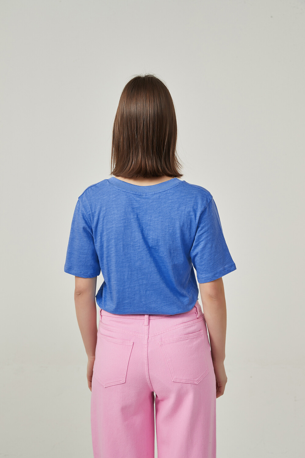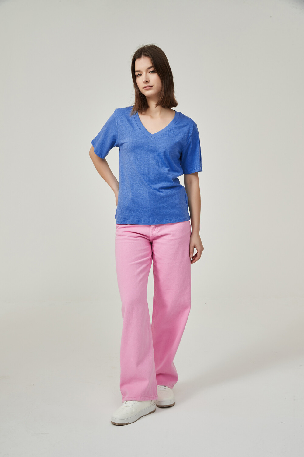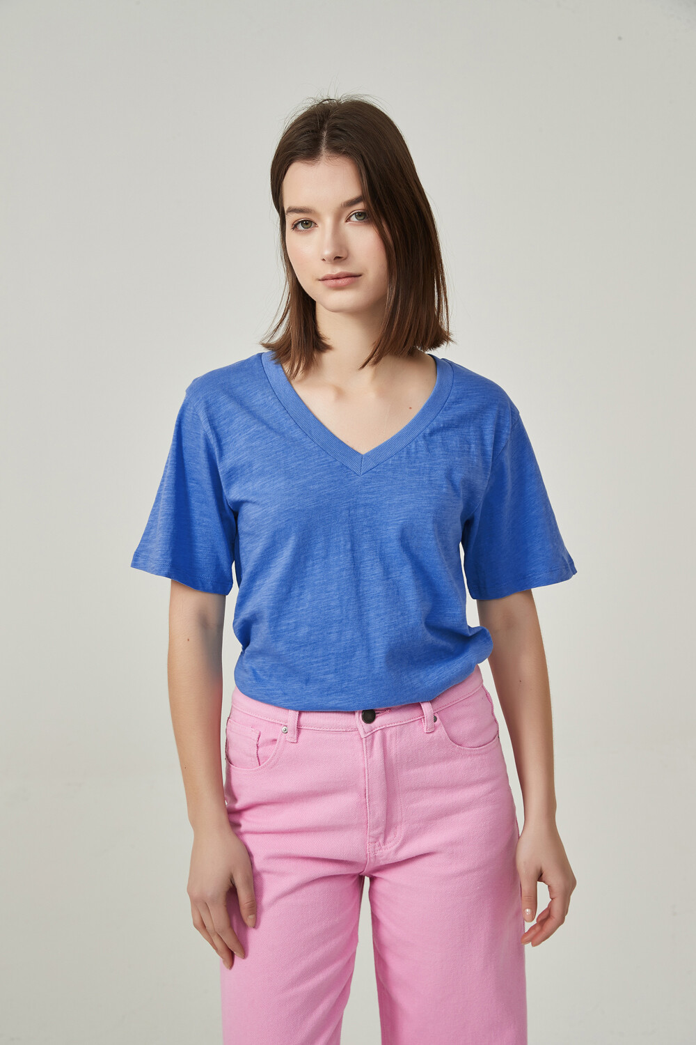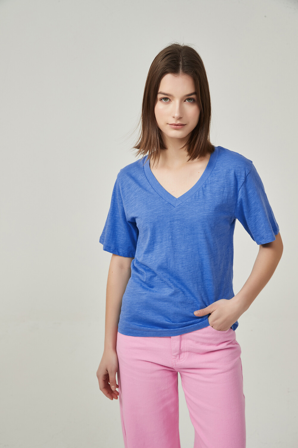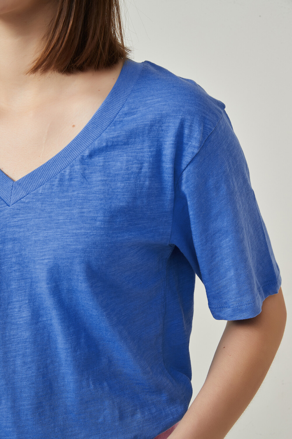 $ 84 Sale Remera manga corta de algodon, al cuerpo y cuello en v