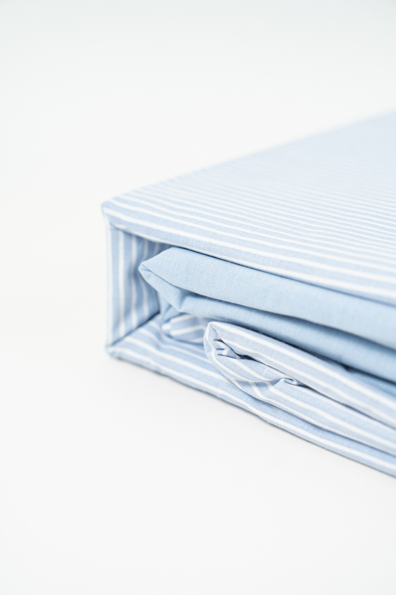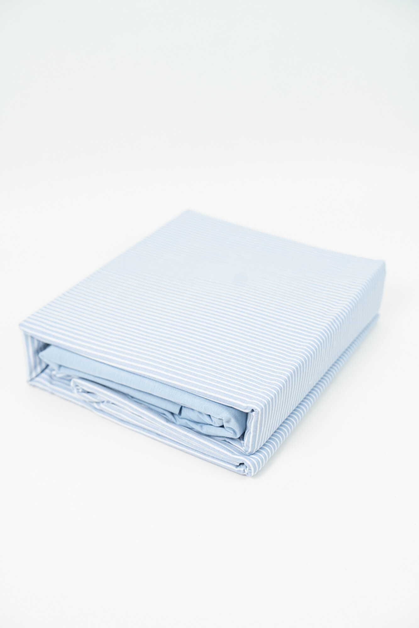 Sábanas 2 Plazas Queen 144 Hilos Stripes - Celeste