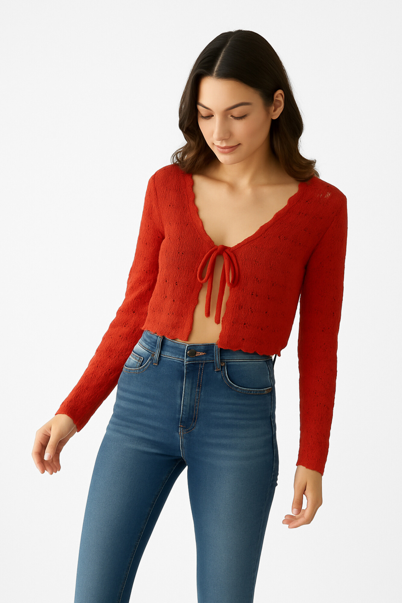 Nuevos Saco algodon, calado, con lazo y cuello en v