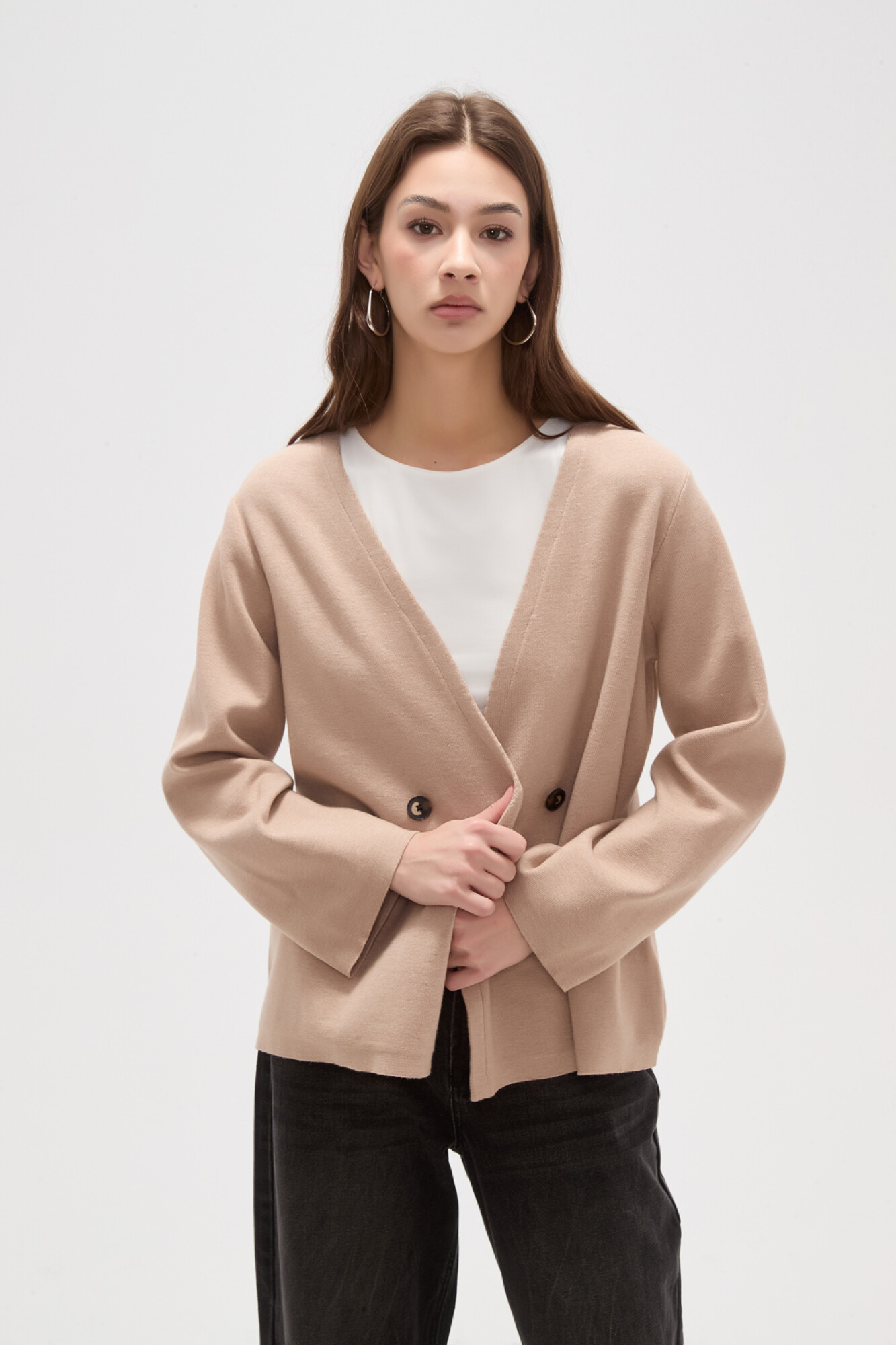 Nuevos Saco viscosa, entallado, con botones y cuello profundo