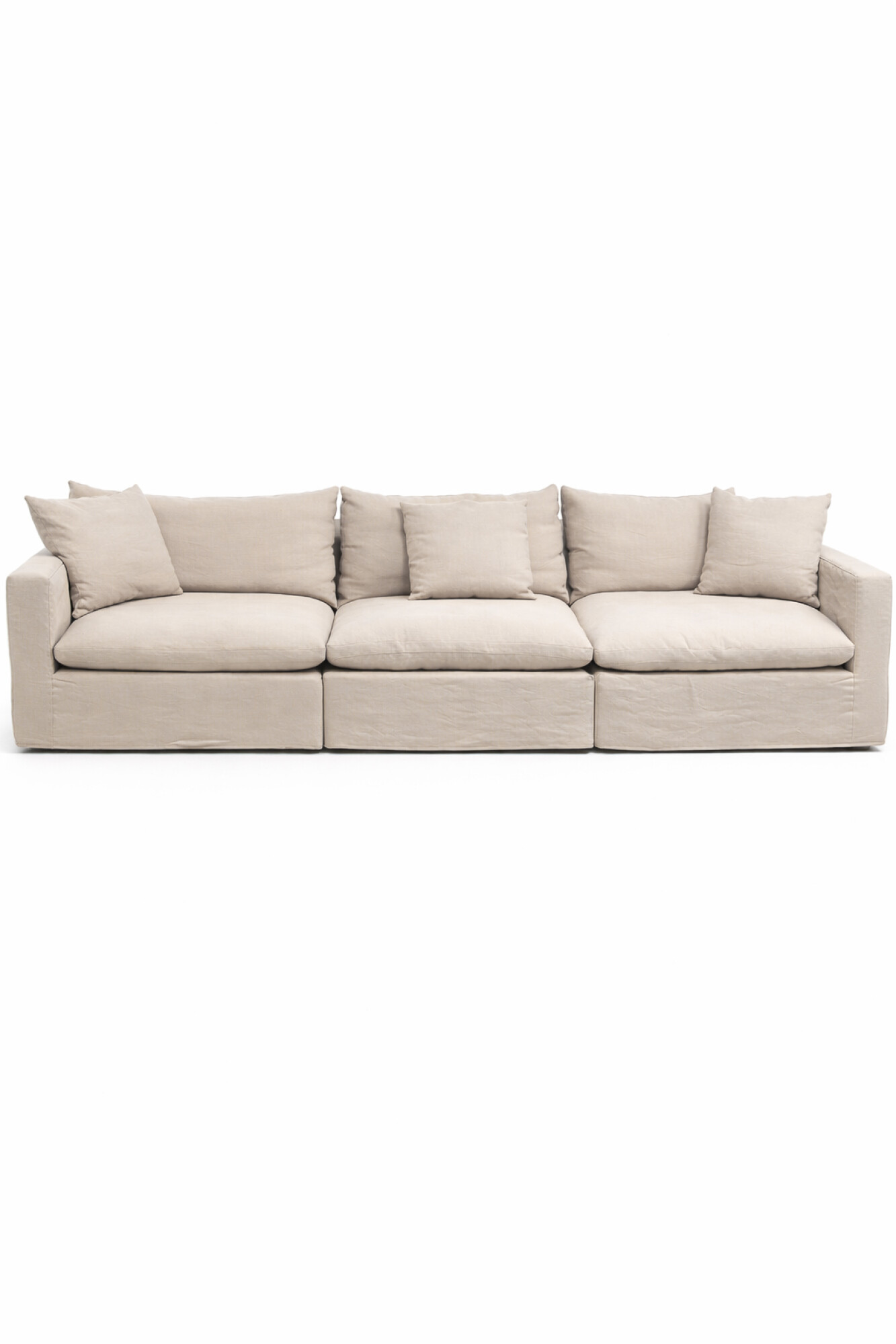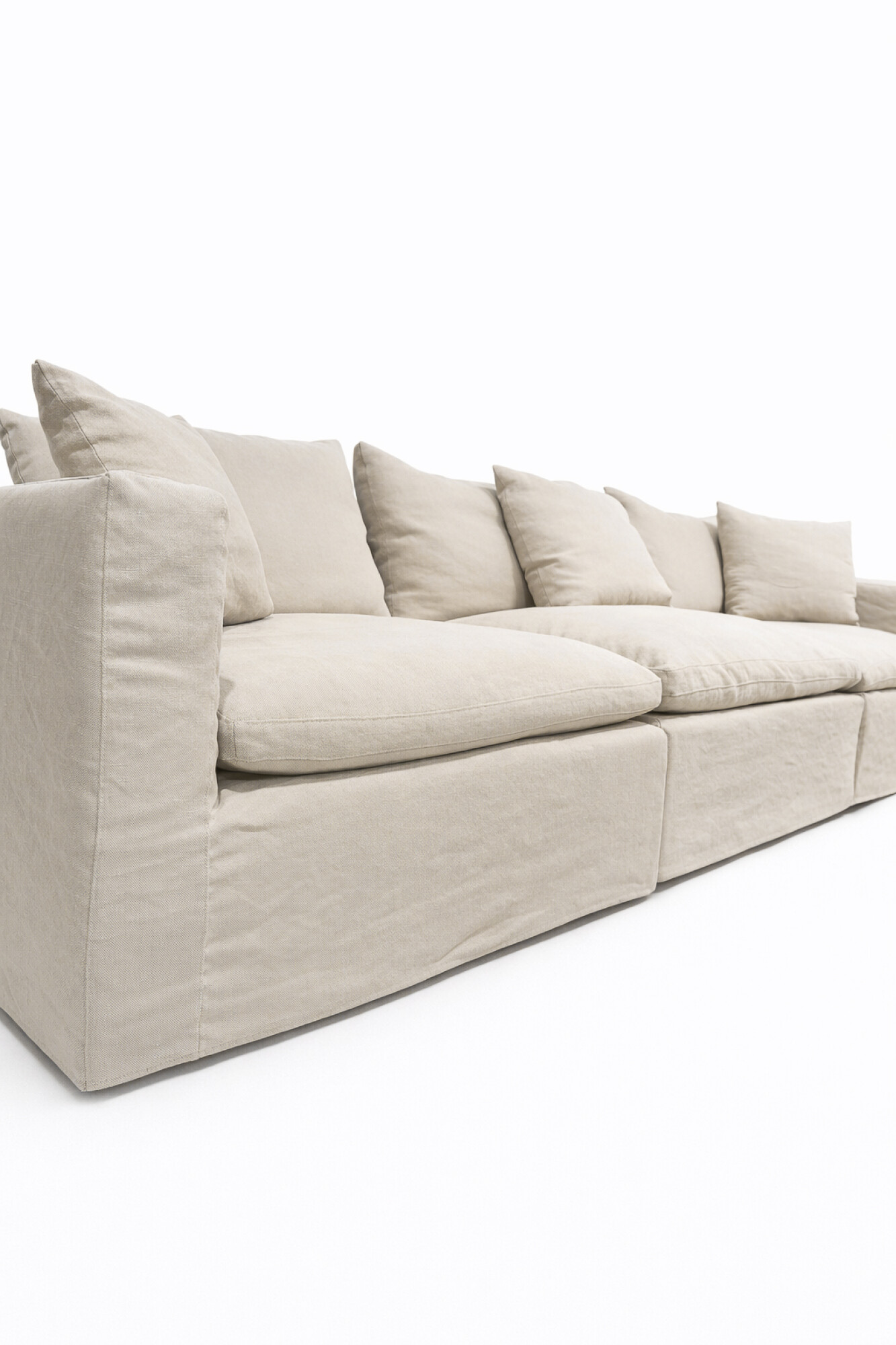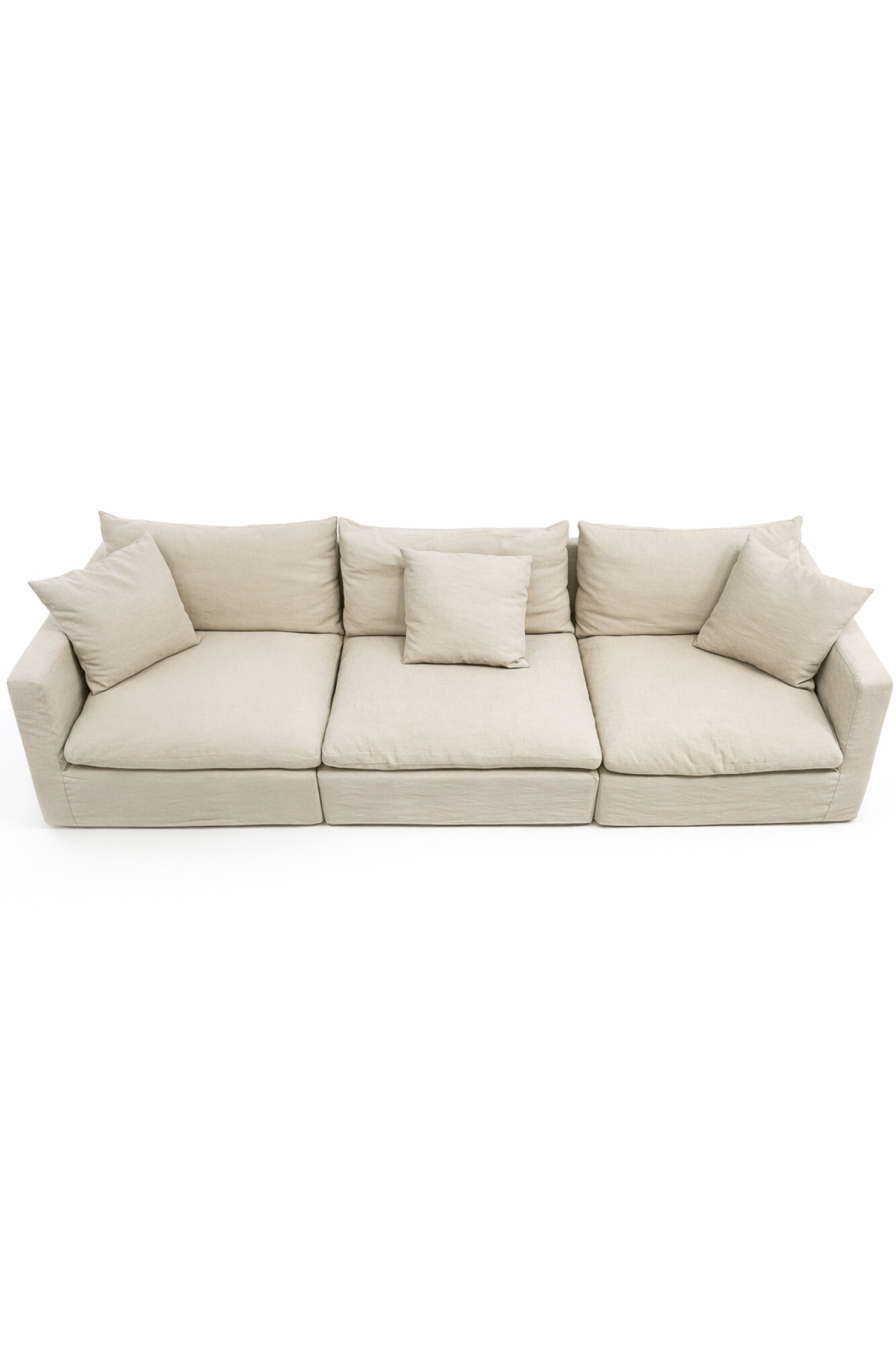 USD 2.373,20 Nuevos Sofá 4 cuerpos relleno de plumas. Estructura: Madera de Alerce. Incluye 3 Almohadones de plumas. Tela: 55% Algodón 45% Lino