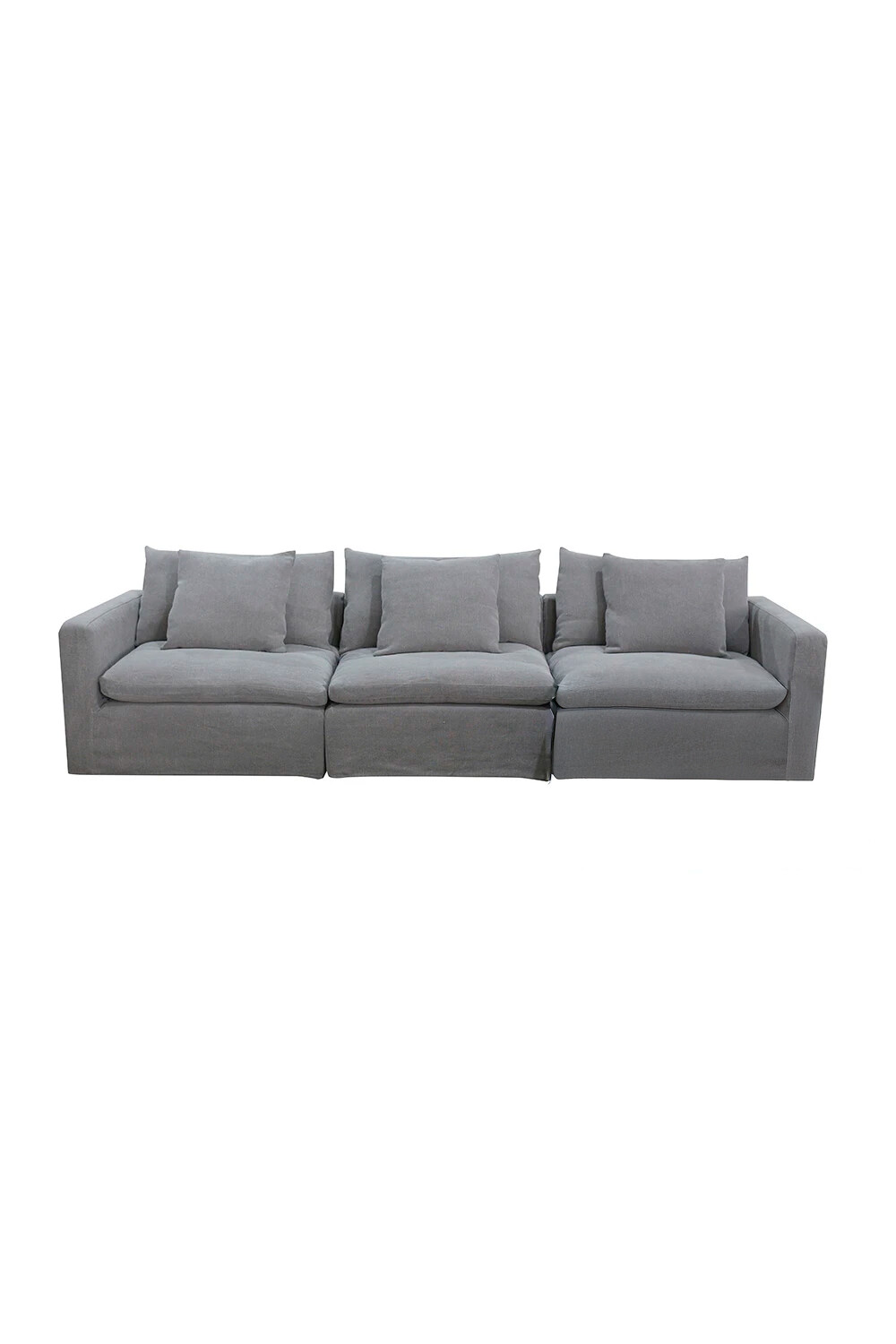 USD 2.373,20 Nuevos Sofá 4 cuerpos relleno de plumas. Estructura: Madera de Alerce. Incluye 3 Almohadones de plumas. Tela: 55% Algodón 45% Lino Color: Gris