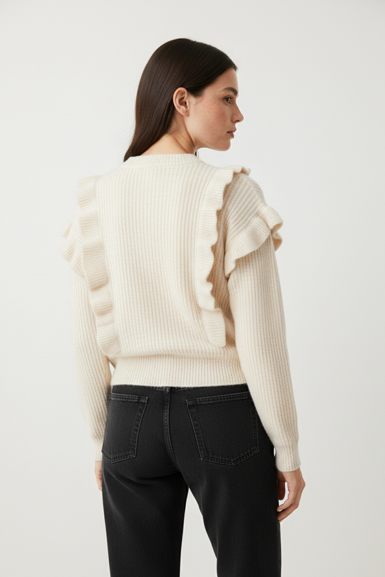 $ 883 Nuevos Recibilo en Sweater poliamida, volados, al cuerpo y cuello a la base