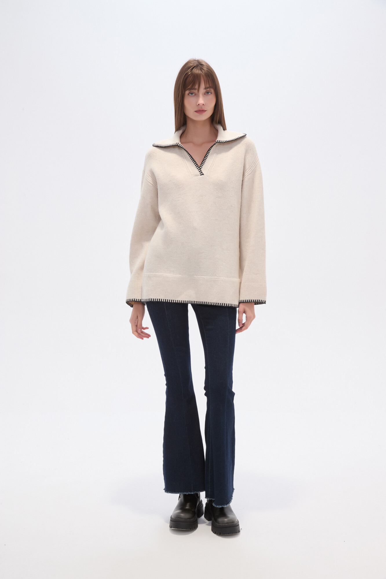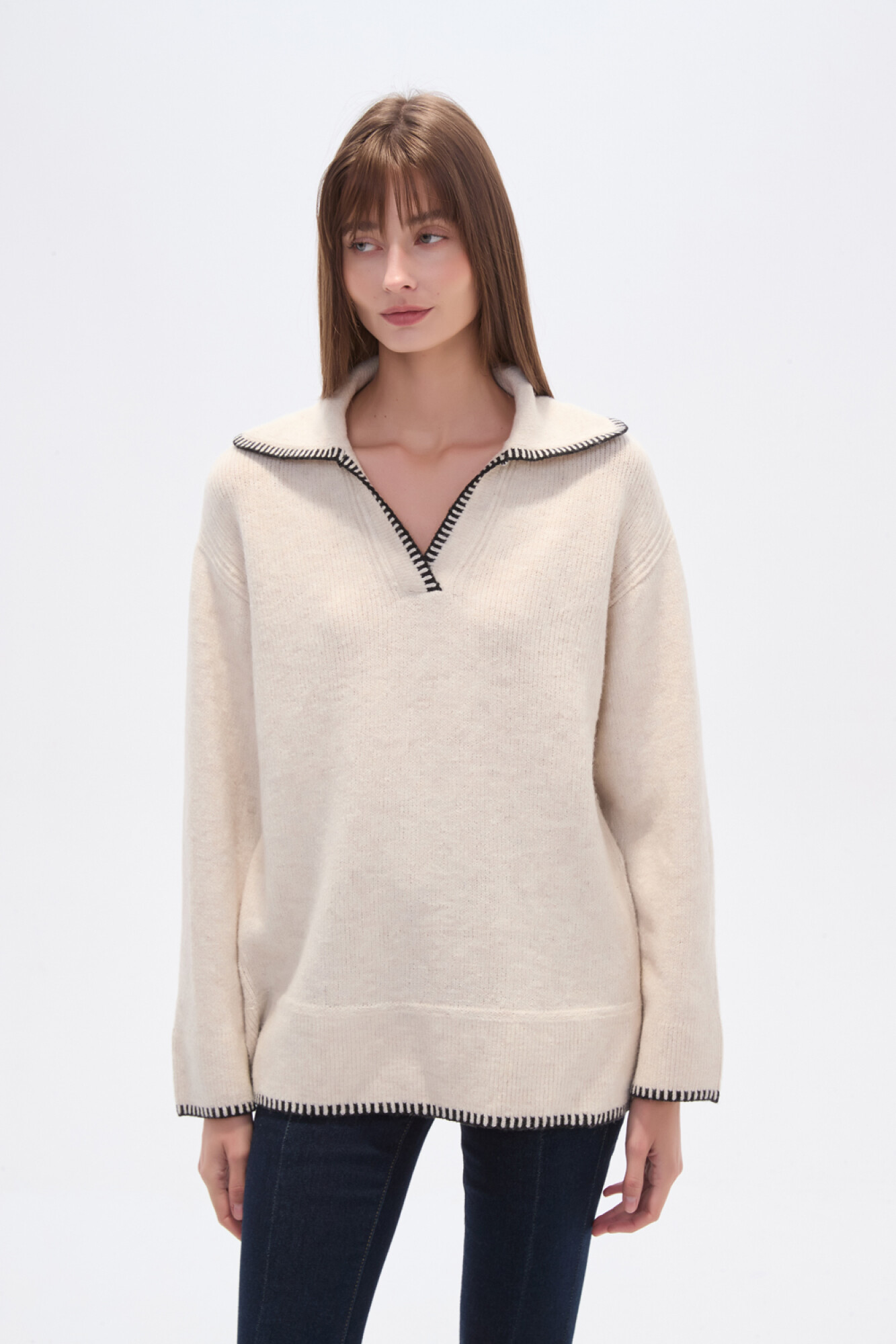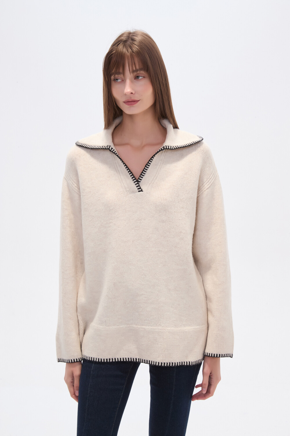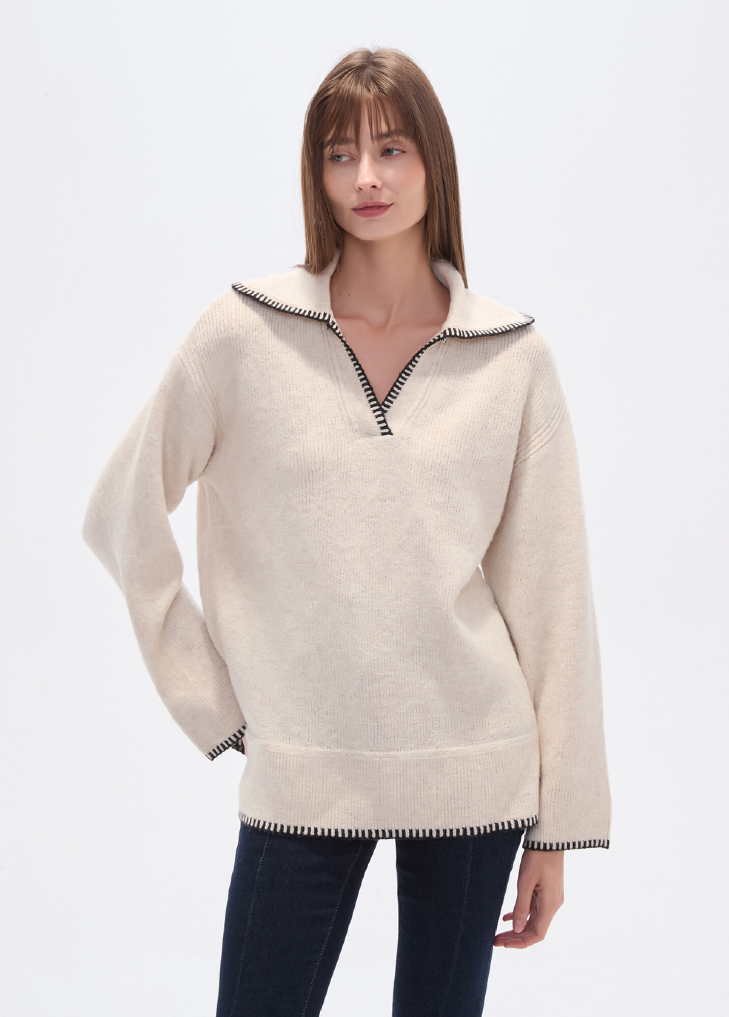 $ 839 Nuevos Sweater poliester, pespunte, holgado y cuello en v