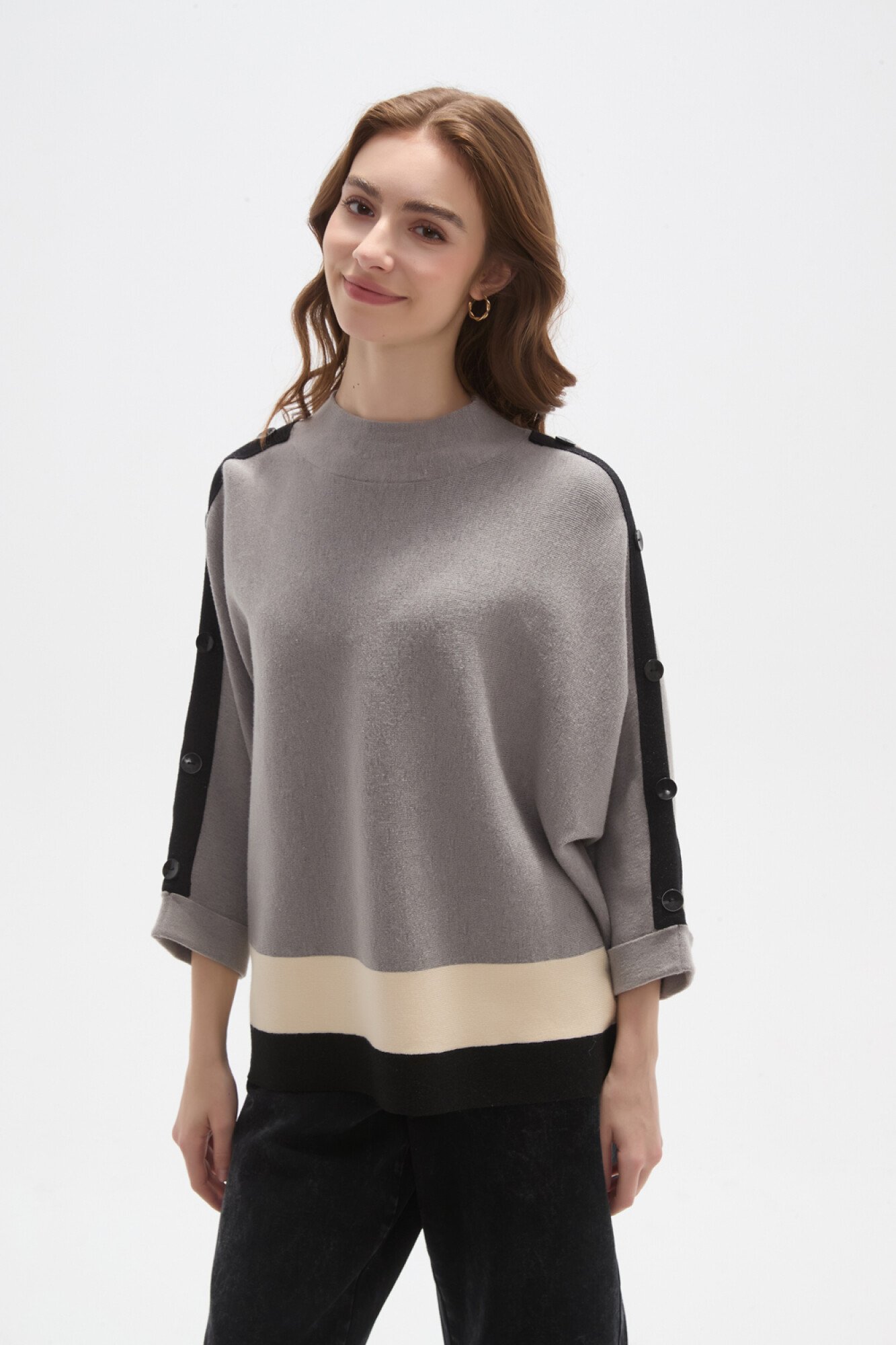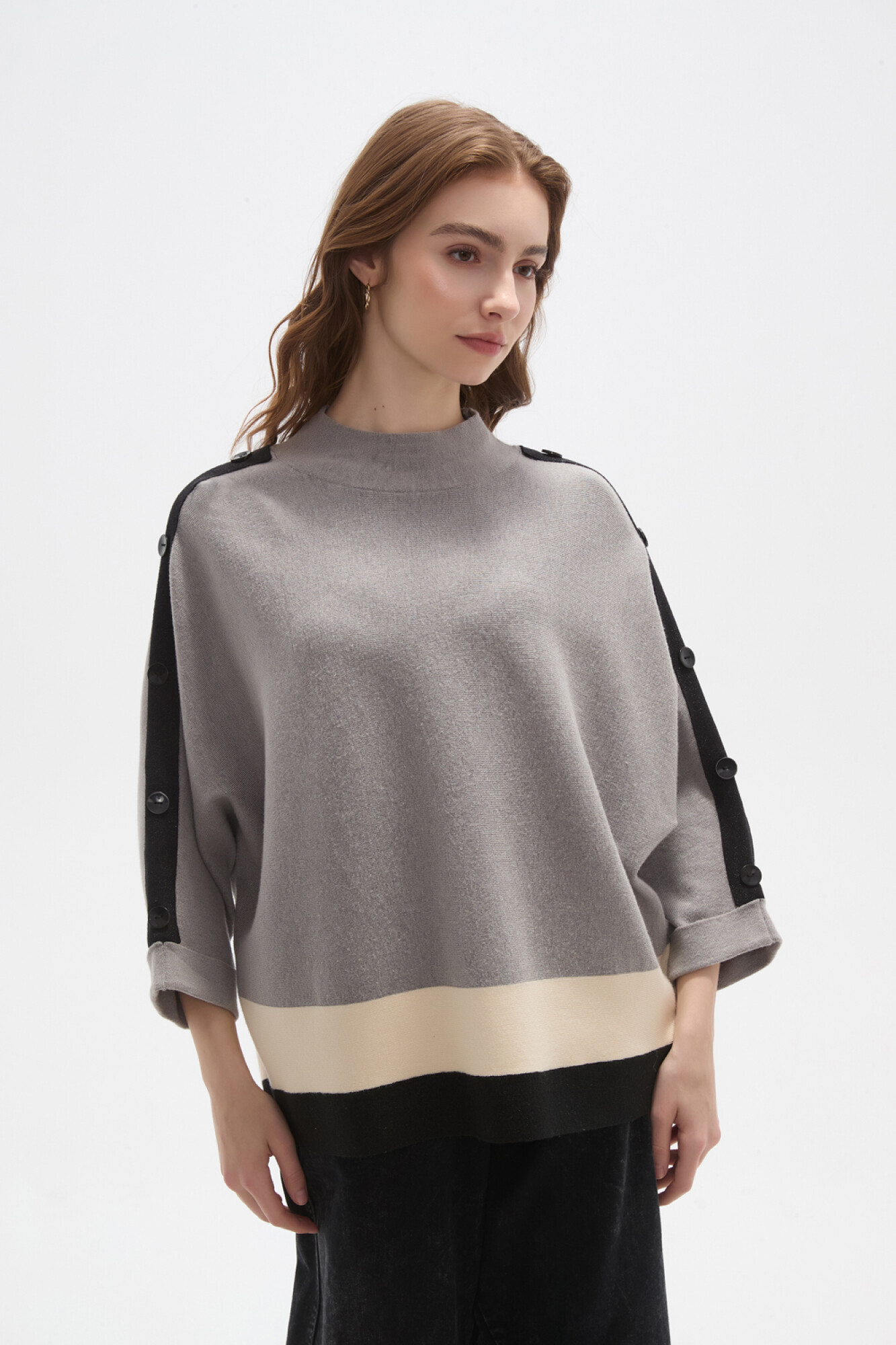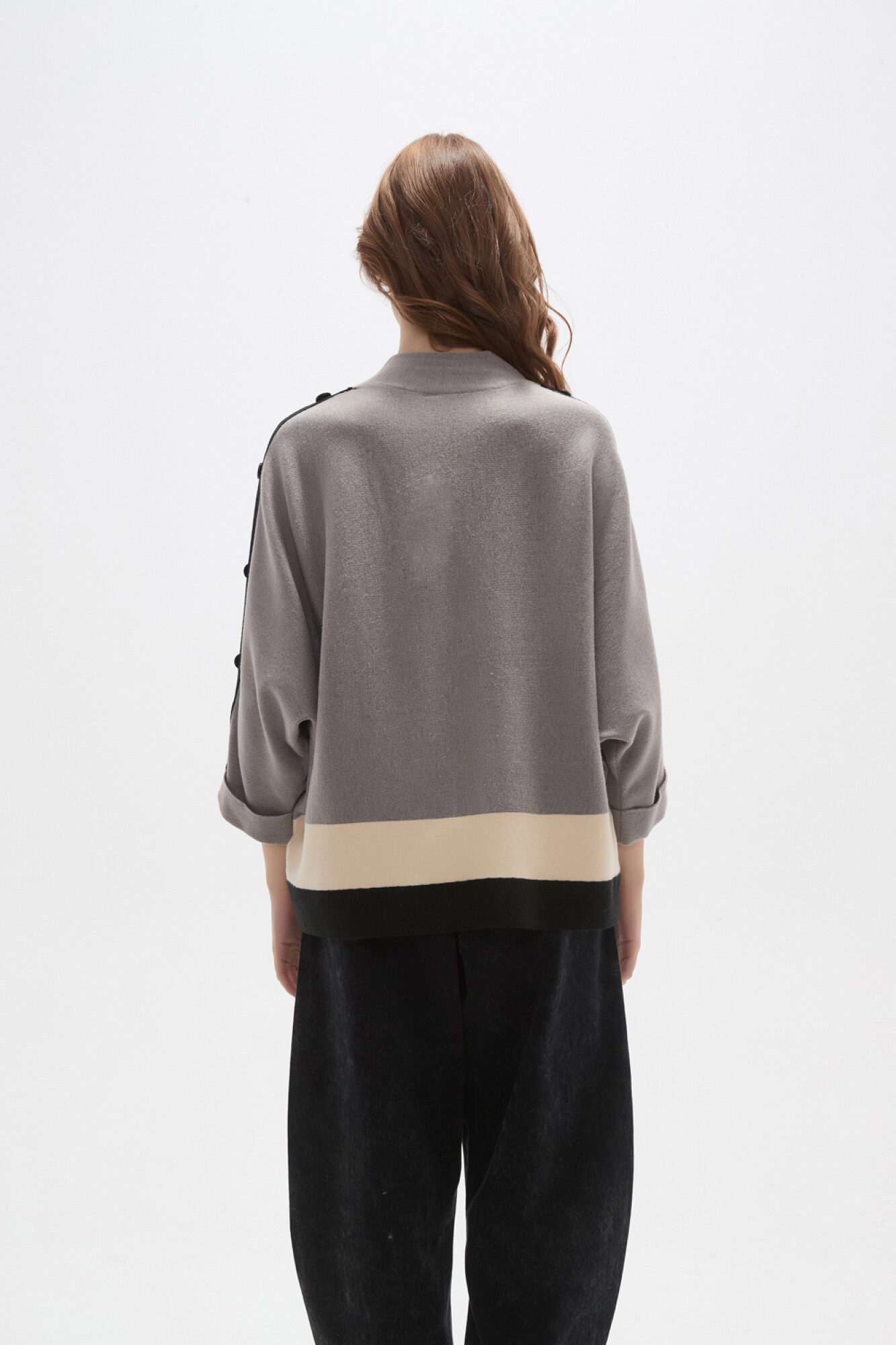 Nuevos Recibilo en Sweater, holgado, con botones, con cinta y cuello polera