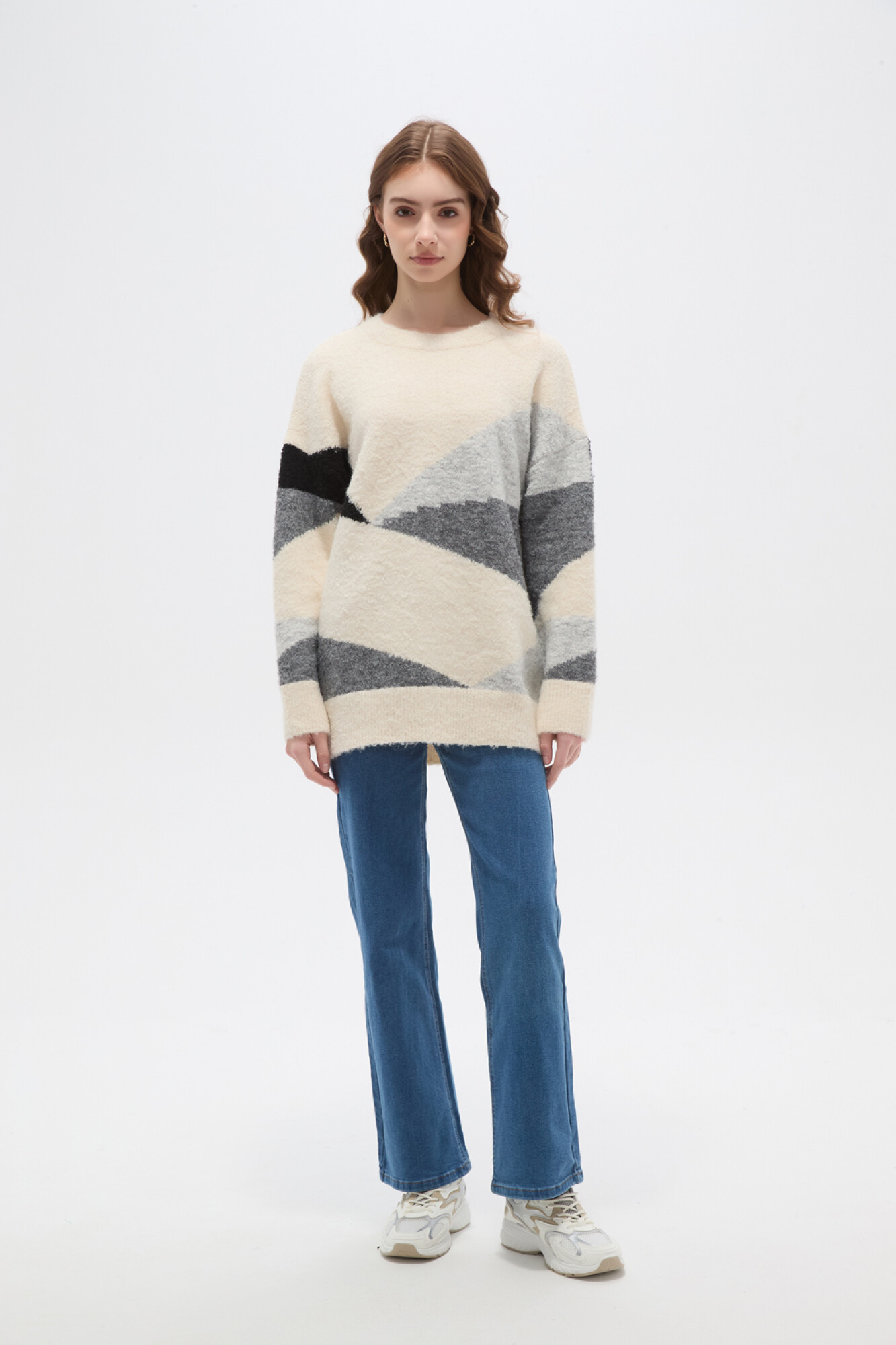 Nuevos Recibilo en Sweater poliester, color block, holgado y cuello a la base