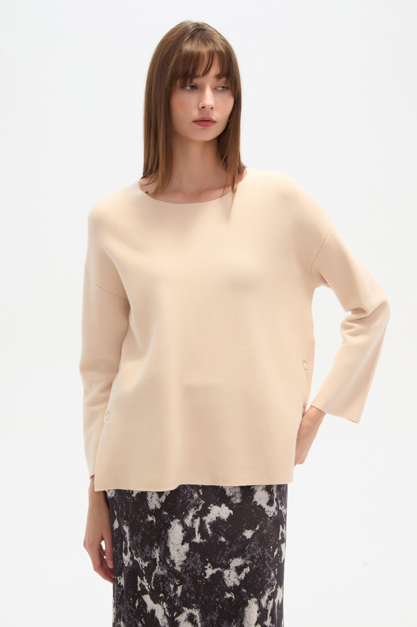 Nuevos Recibilo en Sweater, liso, holgado, con broches y cuello a la base