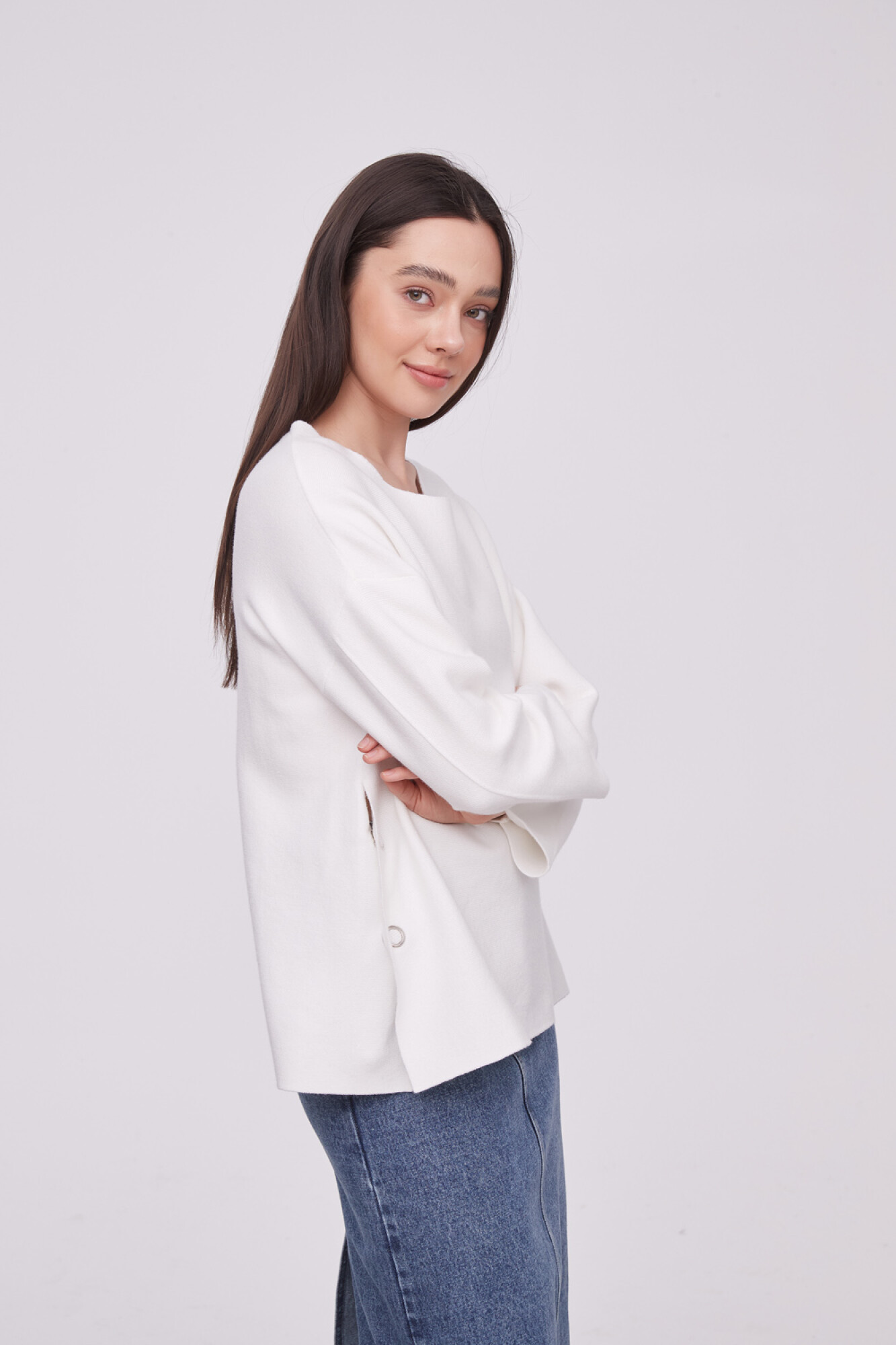 $ 339 Sale Sweater, liso, holgado, con broches y cuello a la base