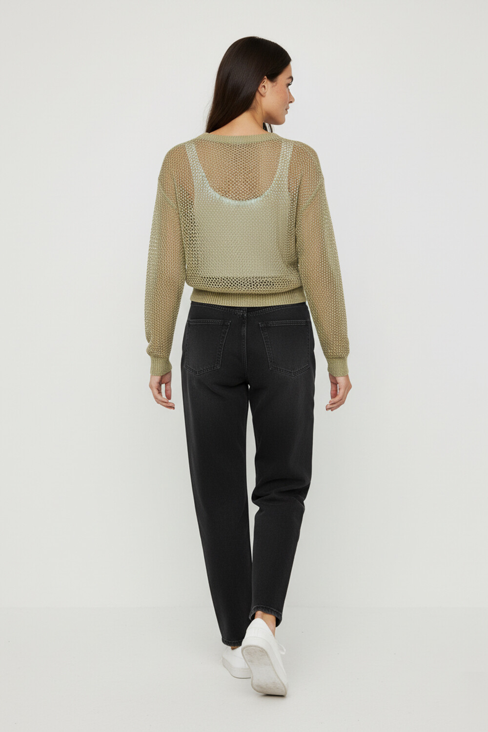 $ 509 Sale Sweater acrilico, calado, holgado y cuello a la base