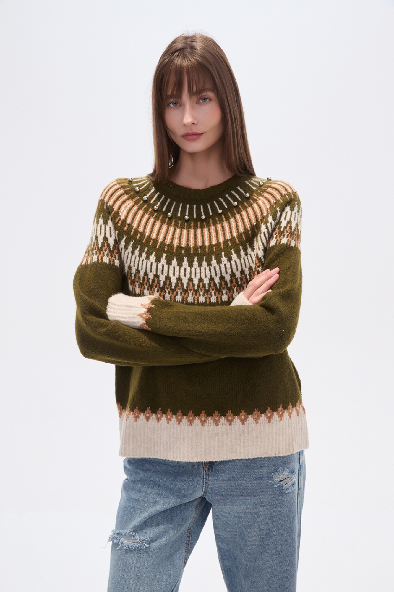 $ 839 Nuevos Recibilo en Sweater poliester, al cuerpo, con cuentas y cuello a la base