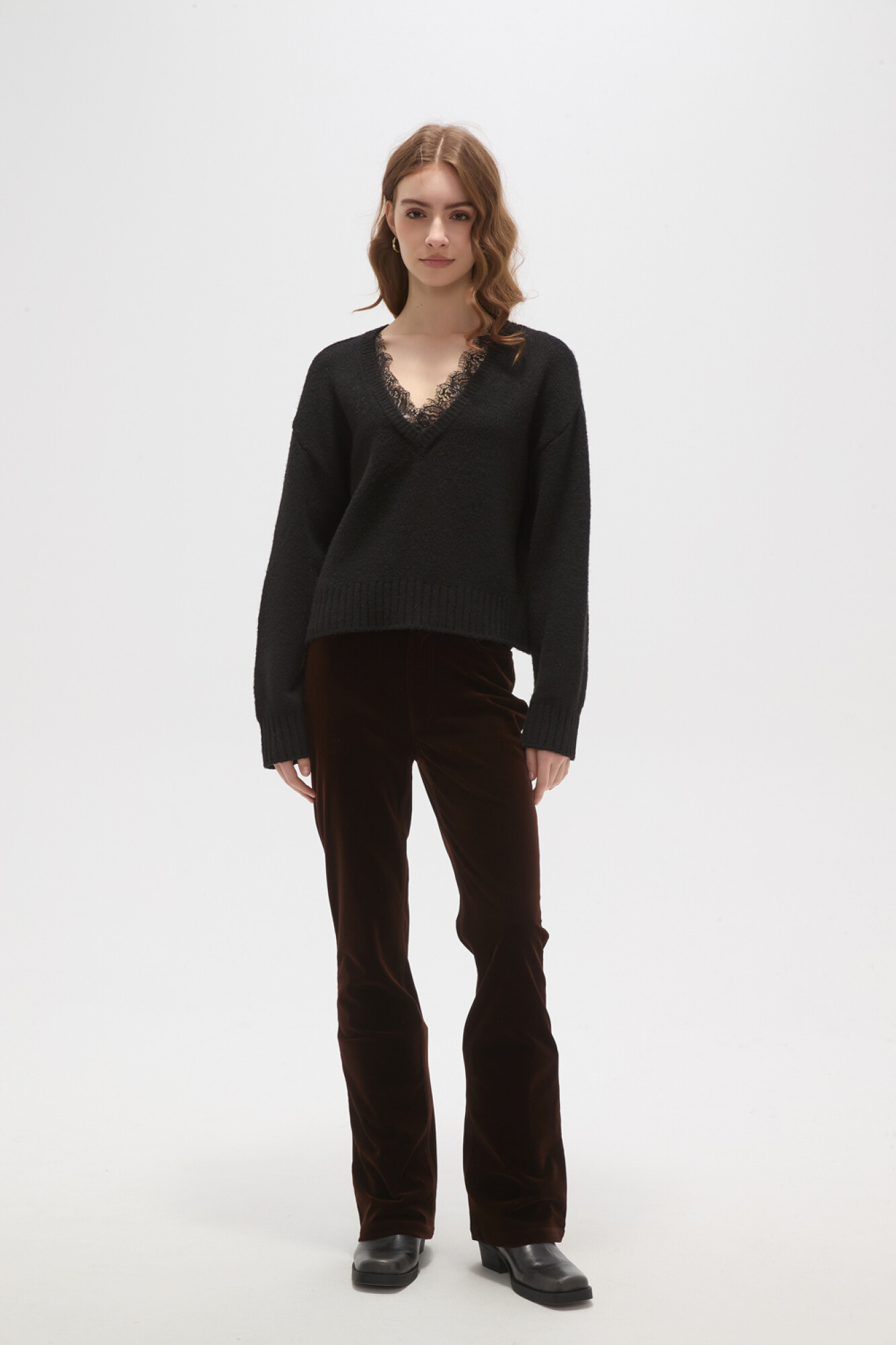 Nuevos Sweater poliester, holgado, con lace y cuello en v