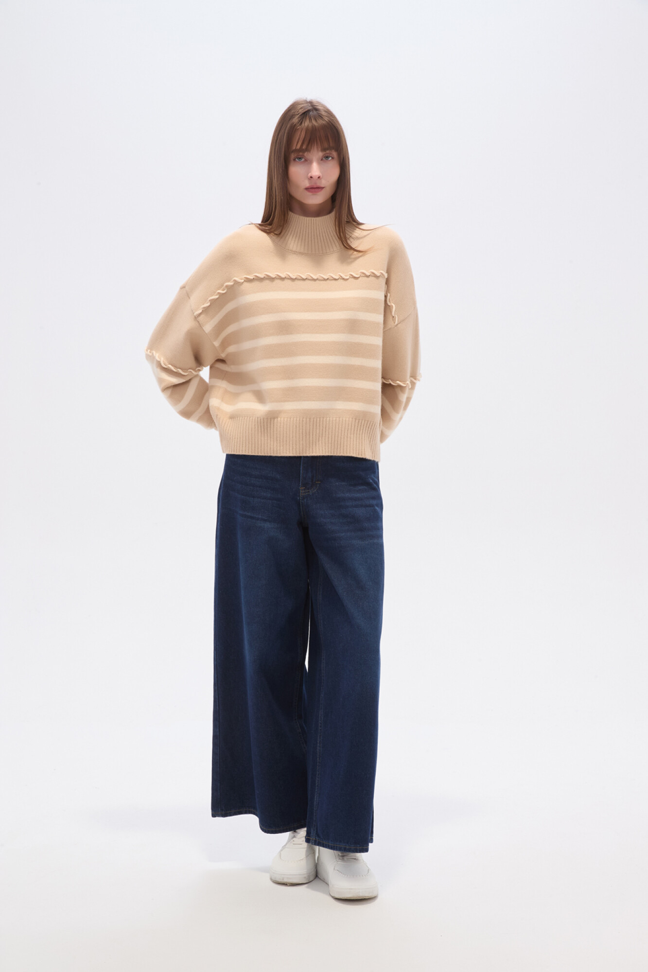 $ 839 Nuevos Sweater acrilico, rayas, holgado y cuello redondo