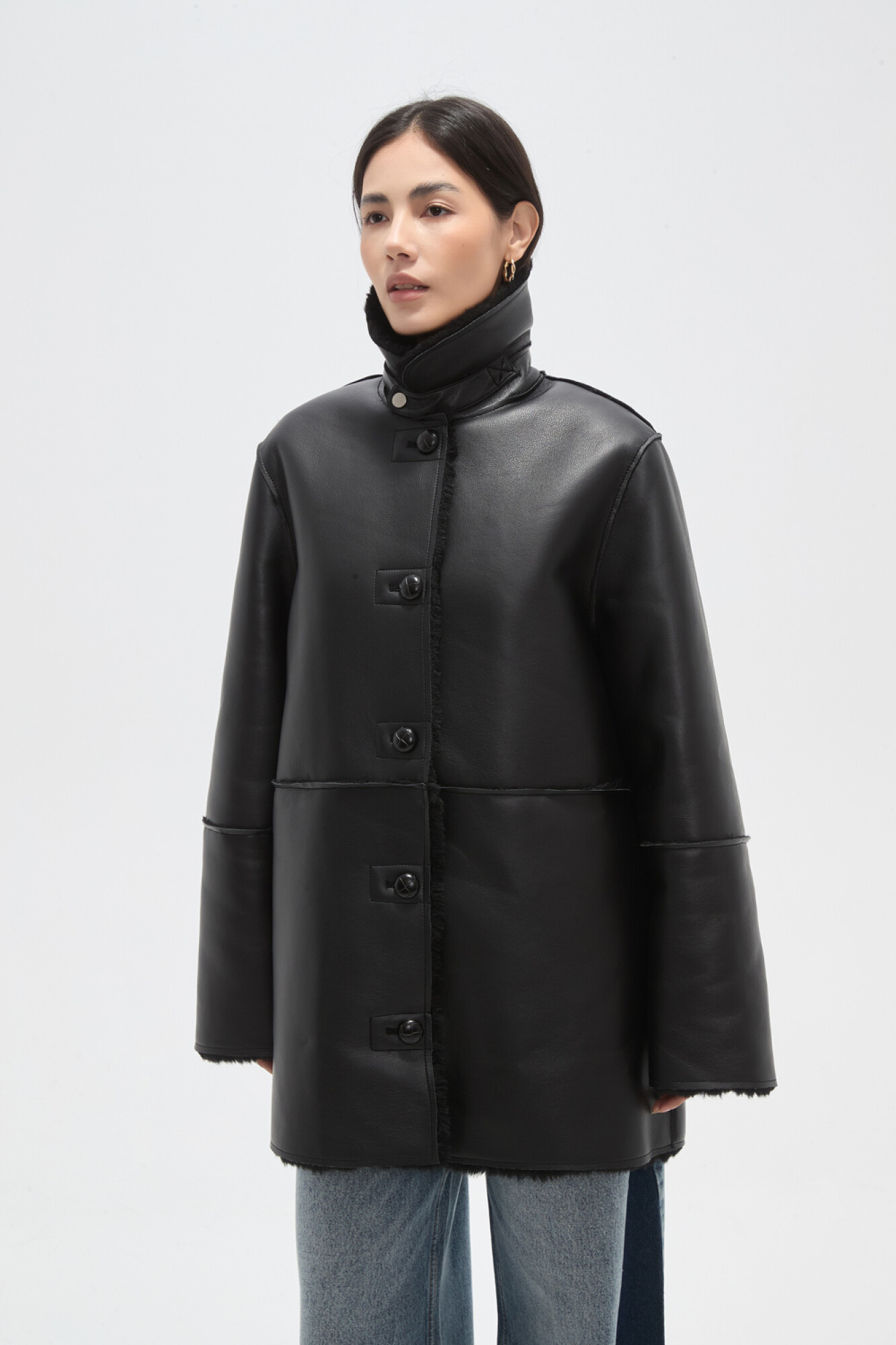 Nuevos Recibilo en Tapado largo de eco-cuero y piel