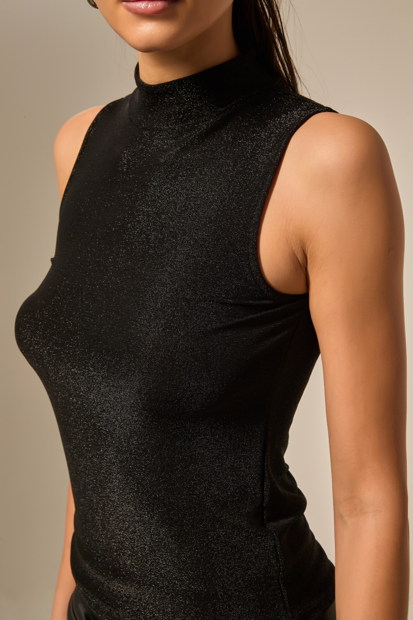 Nuevos Tops sin mangas de poliamida, al cuerpo y cuello alto