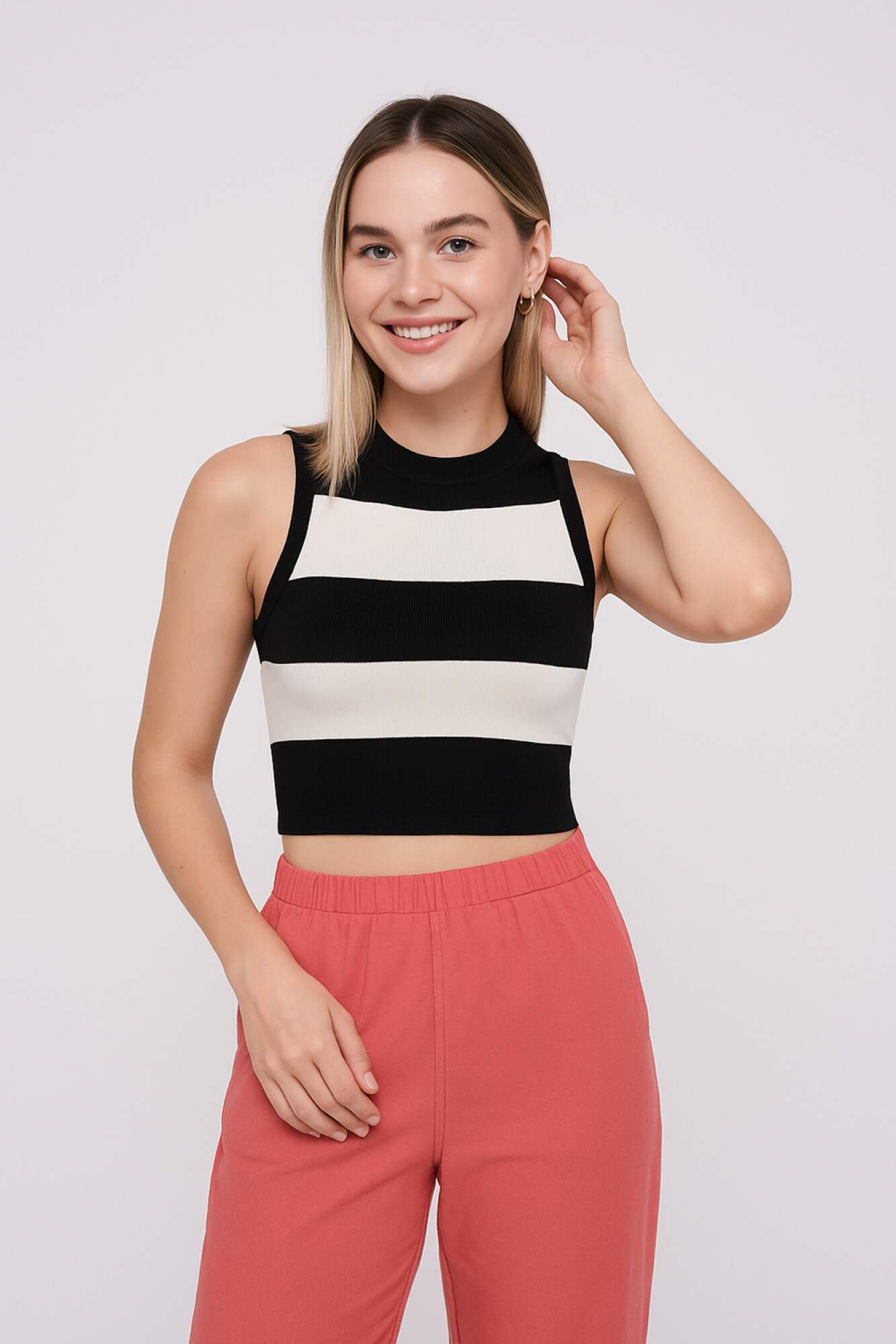 $ 506 Nuevos Recibilo en Tops sin mangas de viscosa, rayas y cuello a la base
